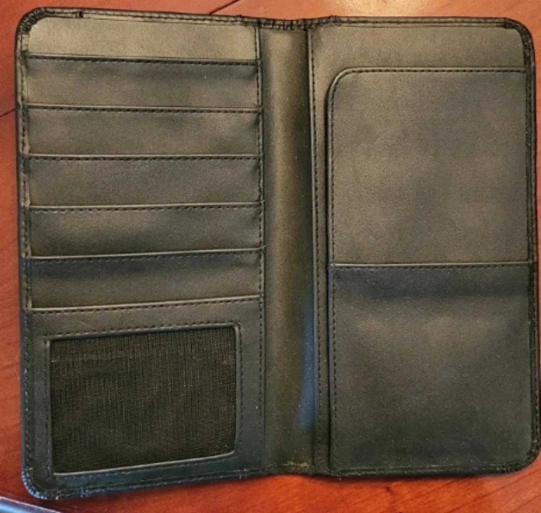 New Black bifold wallet organizer. It has multiple card slots and a clear ID window. Plenty of space for your essentials!