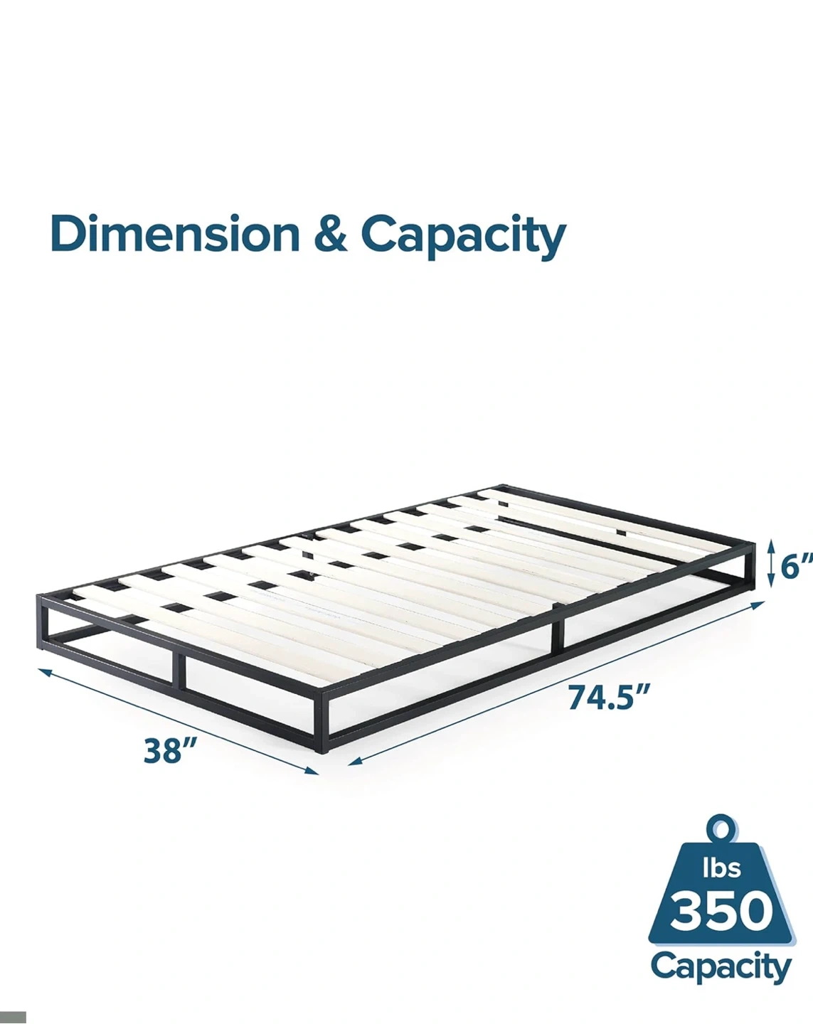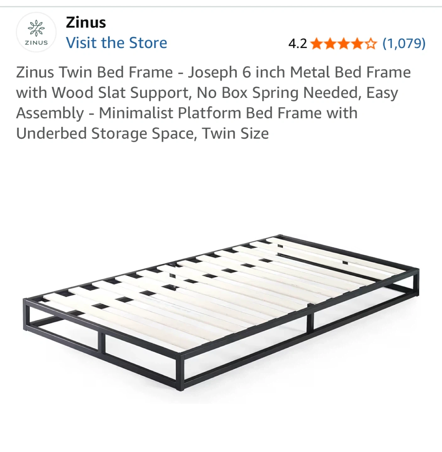 Zinus Joseph Twin Bed Frame (6”) + Mattress