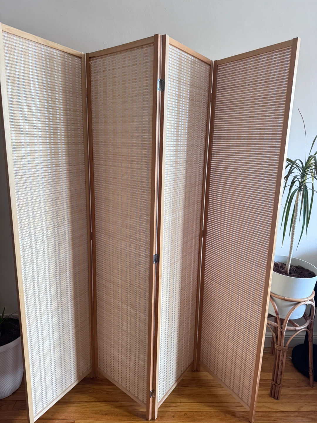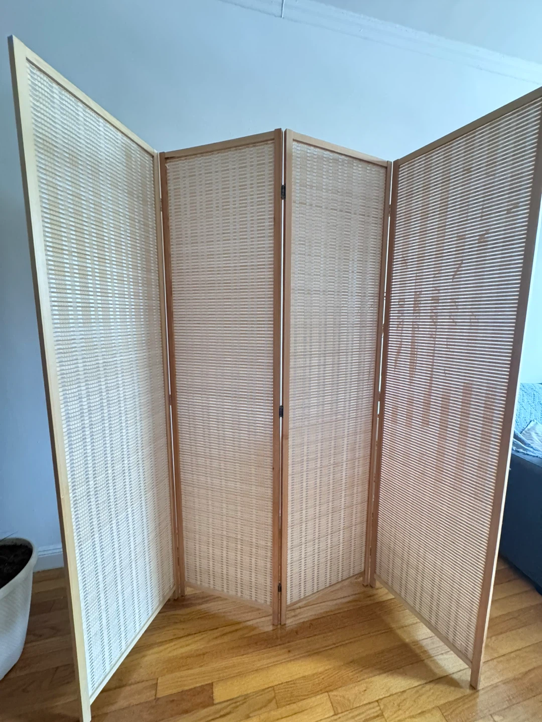 6FT Room Divider 4 Panel, Wall Divider Wood Screen Privacy Screen Seperating Divider Handwork Bamboo Folding Portable for Home Bedroom, size
