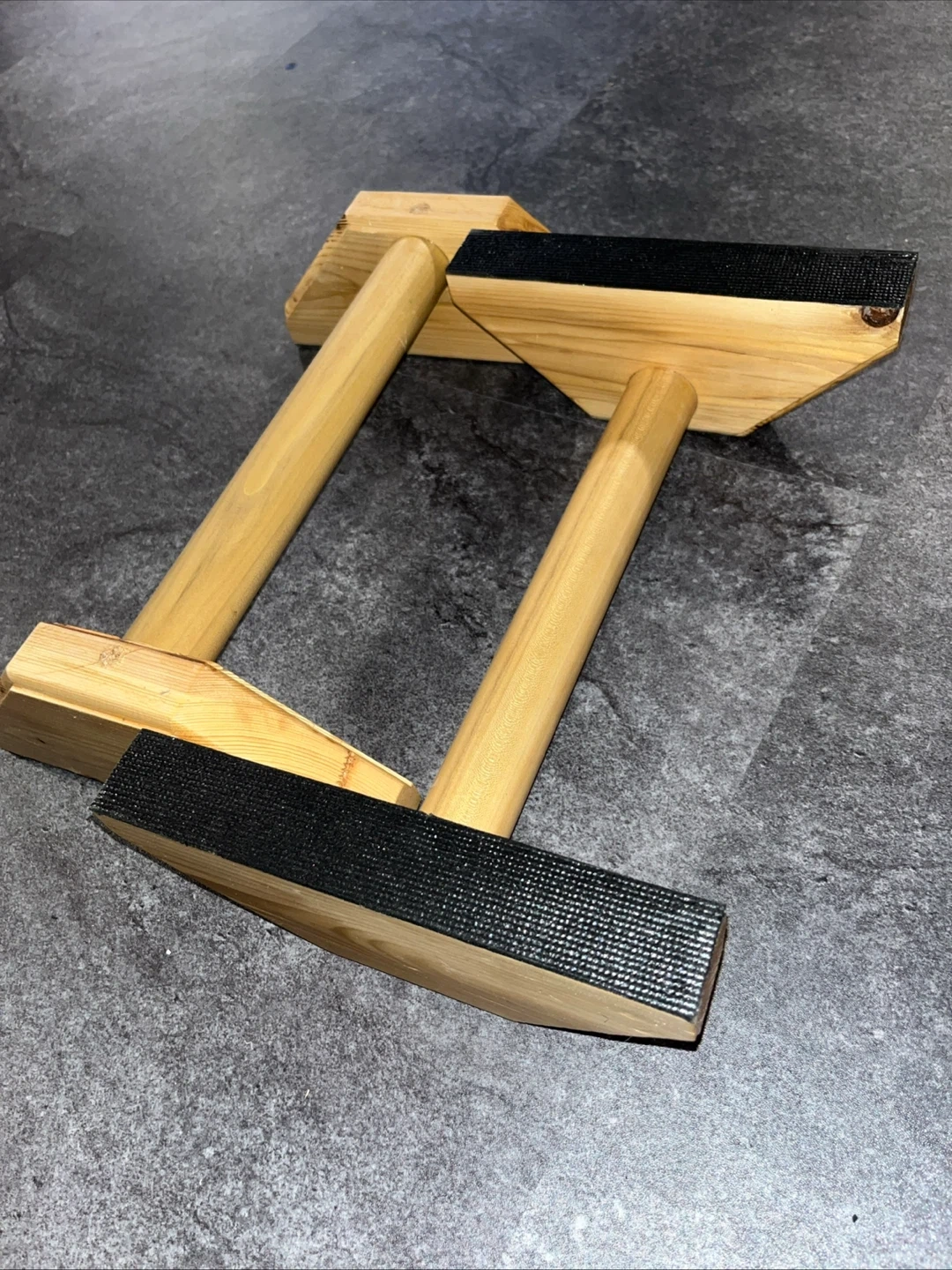 These wooden parallettes are perfect for calisthenics and strength training exercises. They're made from solid wood for durability. They're great for push-ups, dips, and handstands.