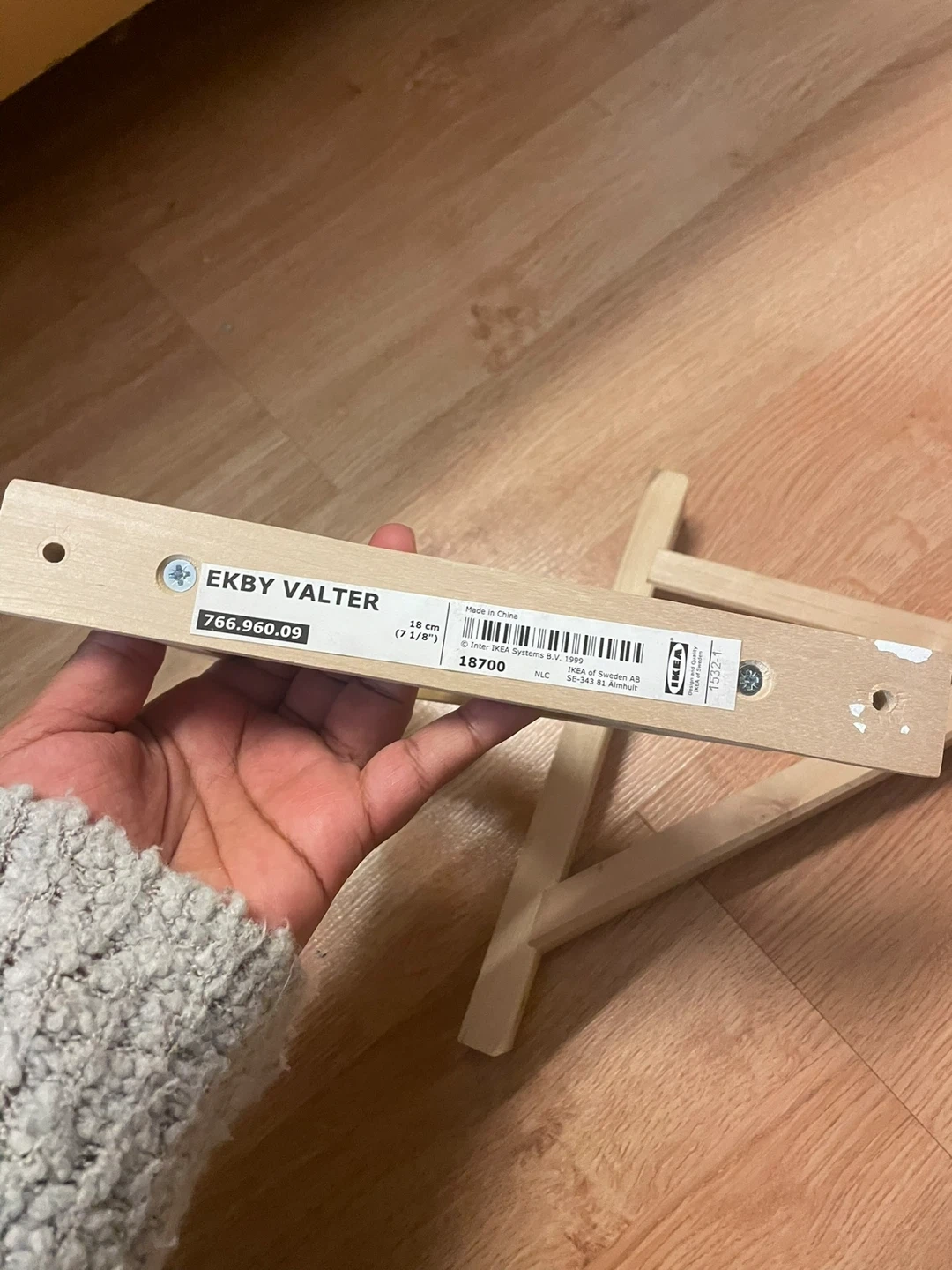 Selling a pair of IKEA EKBY VALTER shelf brackets! These are made of solid wood, which can be stained, oiled, or painted to match your style. Each bracket measures 18 cm (7 1/8 ").