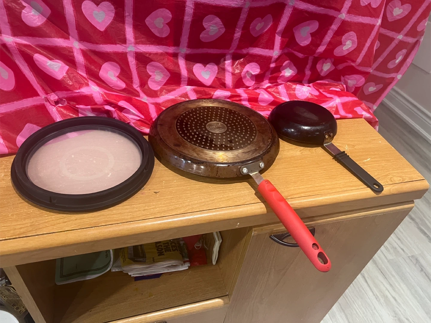 Selling a few pans and a pot. One of the pans is a Wonderchef brand. They have been used so they are not in perfect condition, but they are still useful!