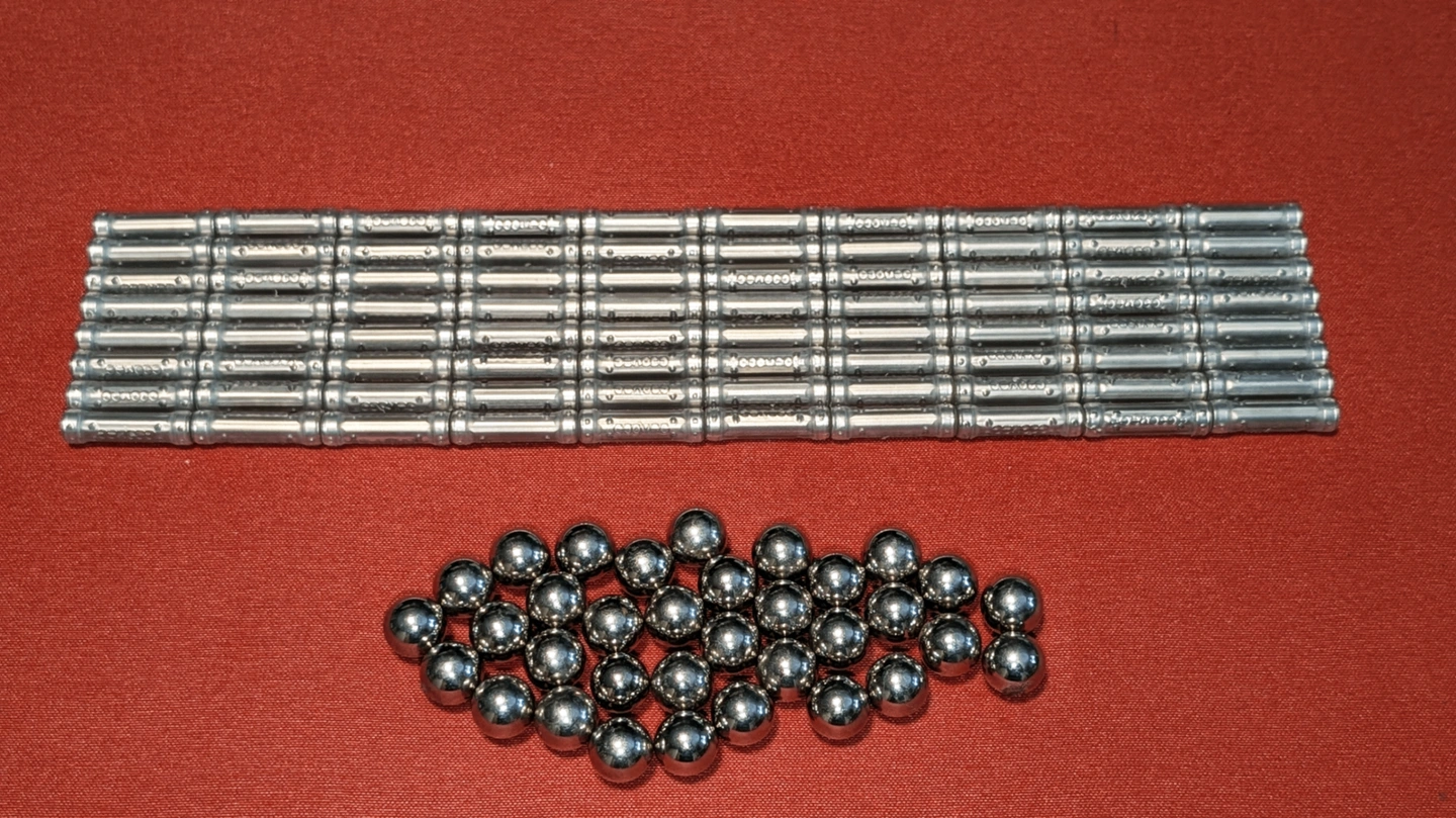 • 34 Steel Spheres: Act as connectors, allowing rods to pivot and form stable joints.