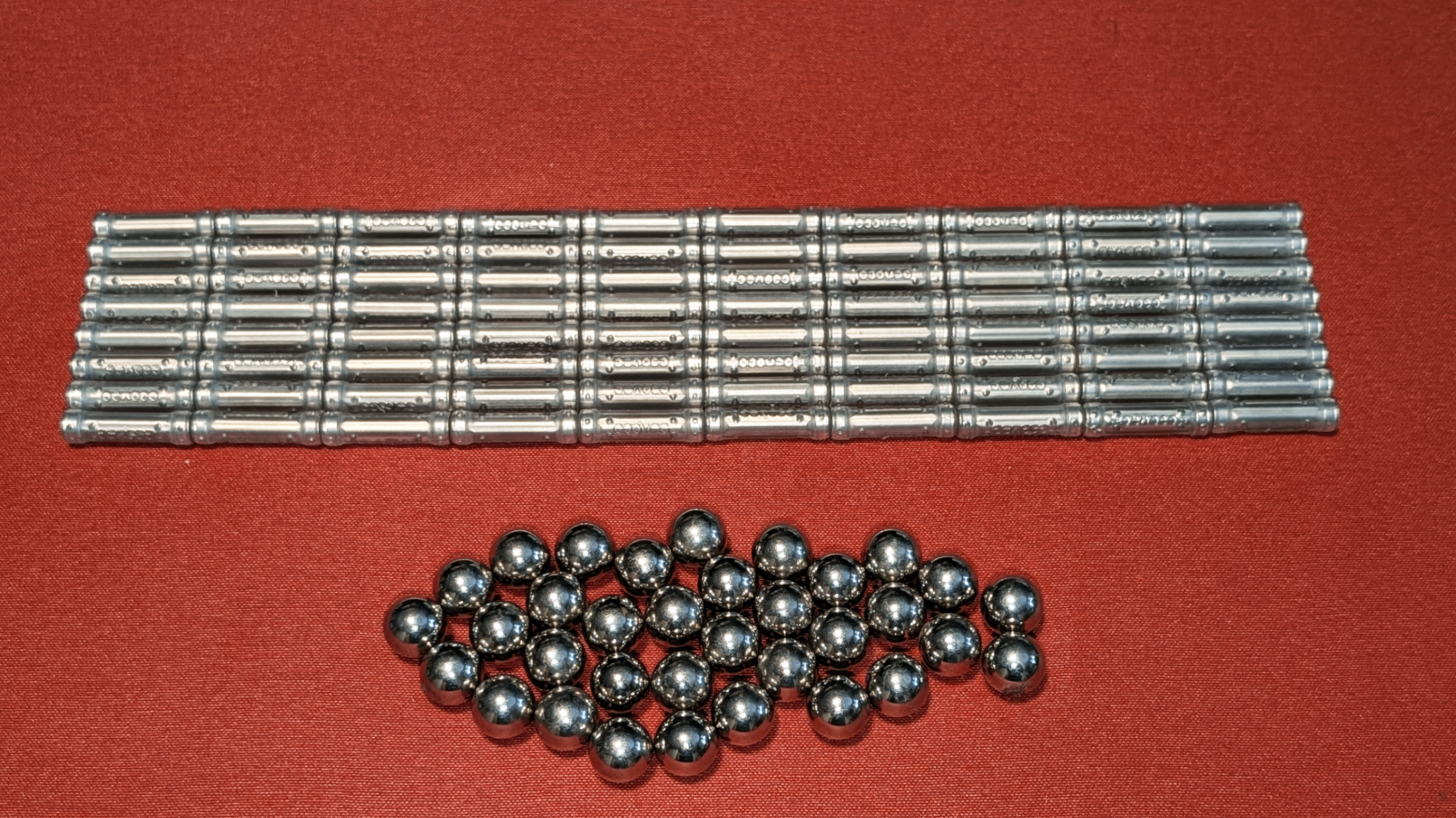 • 34 Steel Spheres: Act as connectors, allowing rods to pivot and form stable joints.