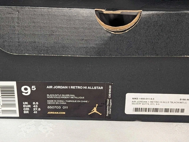DS Air Jordan "All Star/Passport" 1 Retro Hi - Size 9.5
