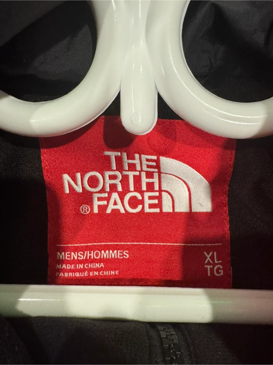 This is a The North Face jacket with Supreme branding. It's orange and black with a hood.