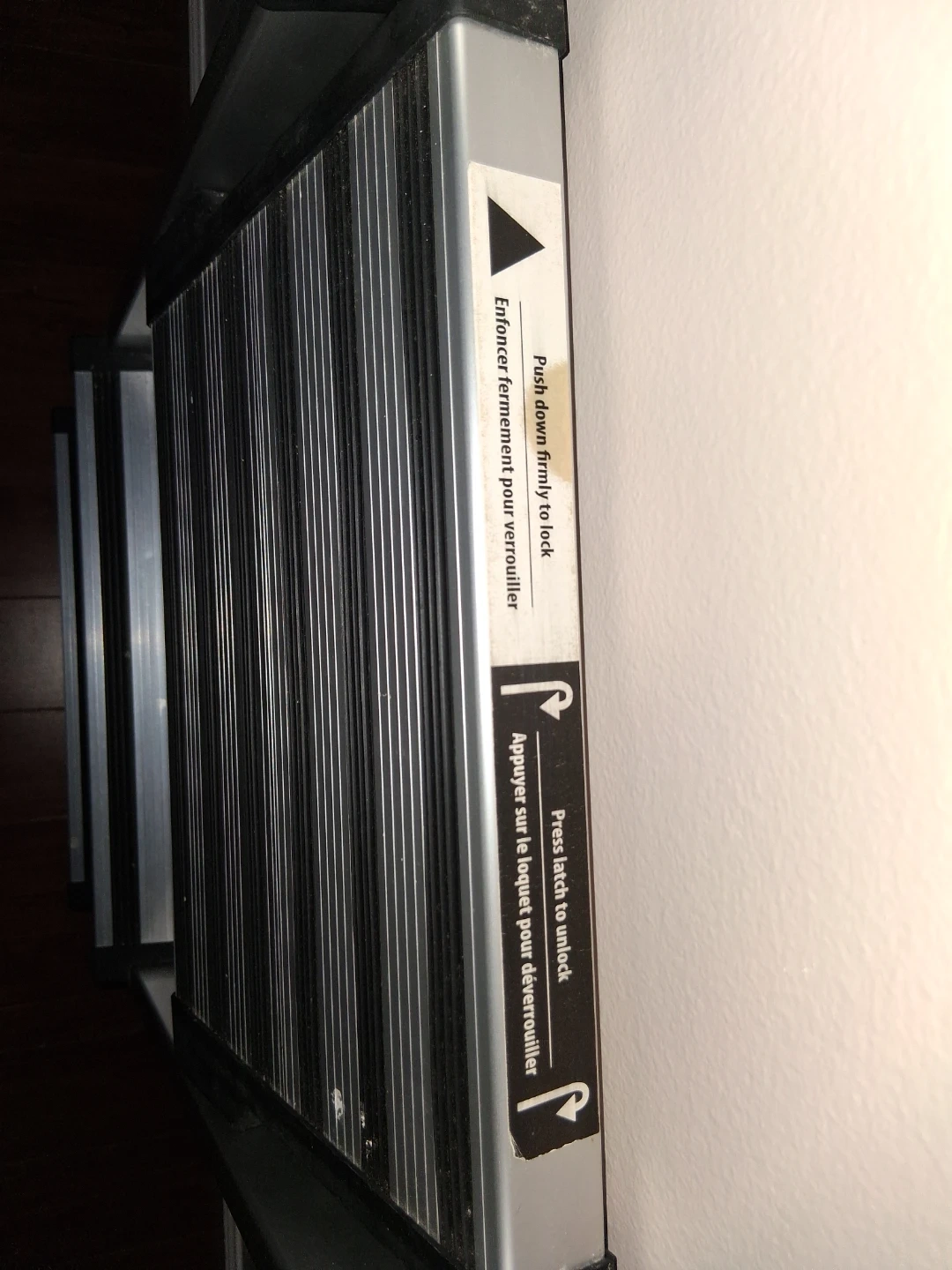 This is a 3-step aluminum step ladder. It's made of durable aluminum and features non-slip treads. Easy to fold and store! Clean and new. Ready for a new home.