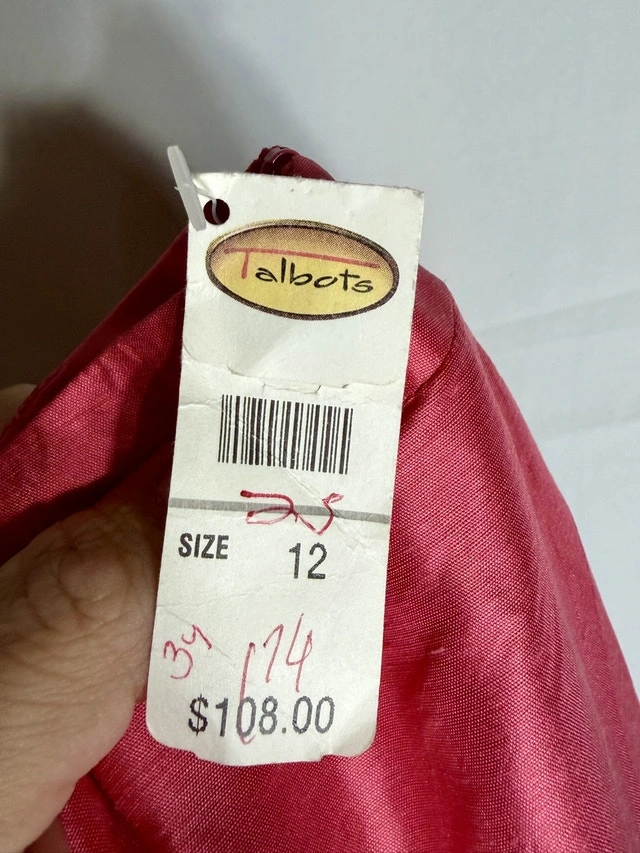 Check out these vintage 90s Talbots silk pants in red! These are a stylish and elegant addition to any wardrobe. They feature a high rise and straight leg design, perfect for a sophisticated look. The 100% silk material and lining make them luxurious and comfortable, while the solid red color adds a pop of color to any outfit. Perfect for summer, fall, and spring seasons, these vintage pants are a timeless piece. Size 12 in Talbots pants usually lines up with modern women’s US size 12. Vintage sizing can sometimes feel slightly bigger than modern brands, with a bit roomier waist/hips. The fit is classic straight leg, not tight or skinny. These pre-loved, pure silk pants are in good condition. Key Features: Brand: Talbots, Material: 100% Silk, Colour: Red, Size: 12. Comparable pairs are selling for around $70 on Kijiji. If the ad is up, these pants are available!