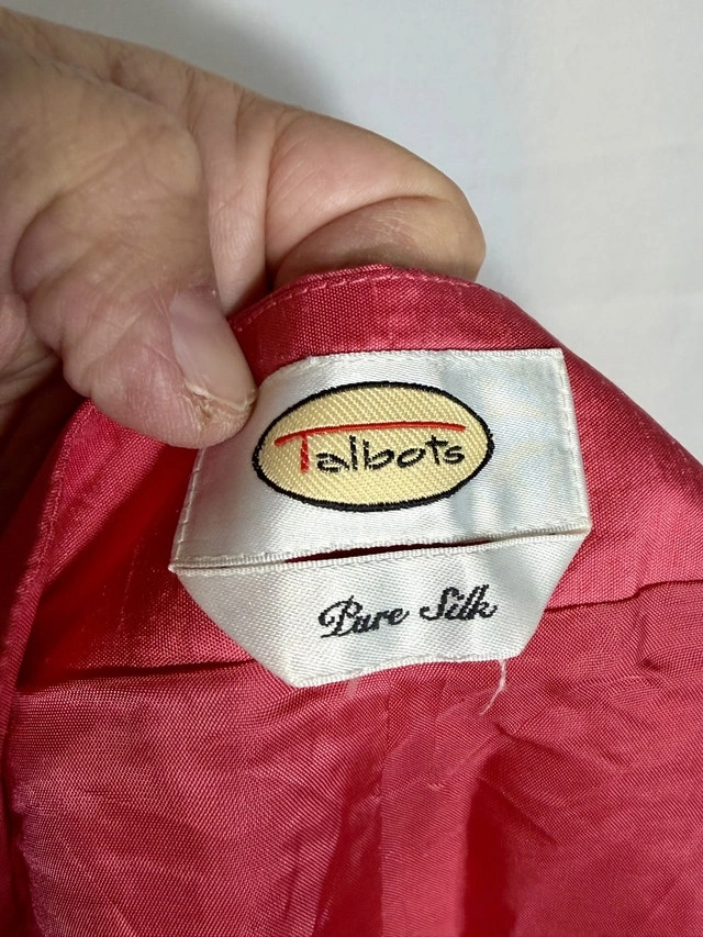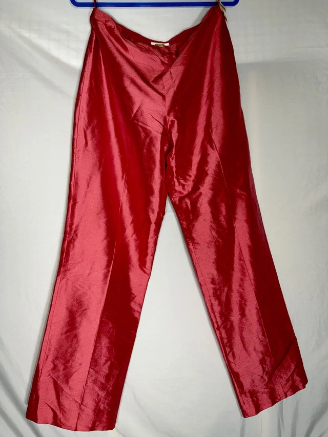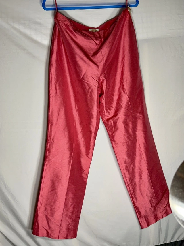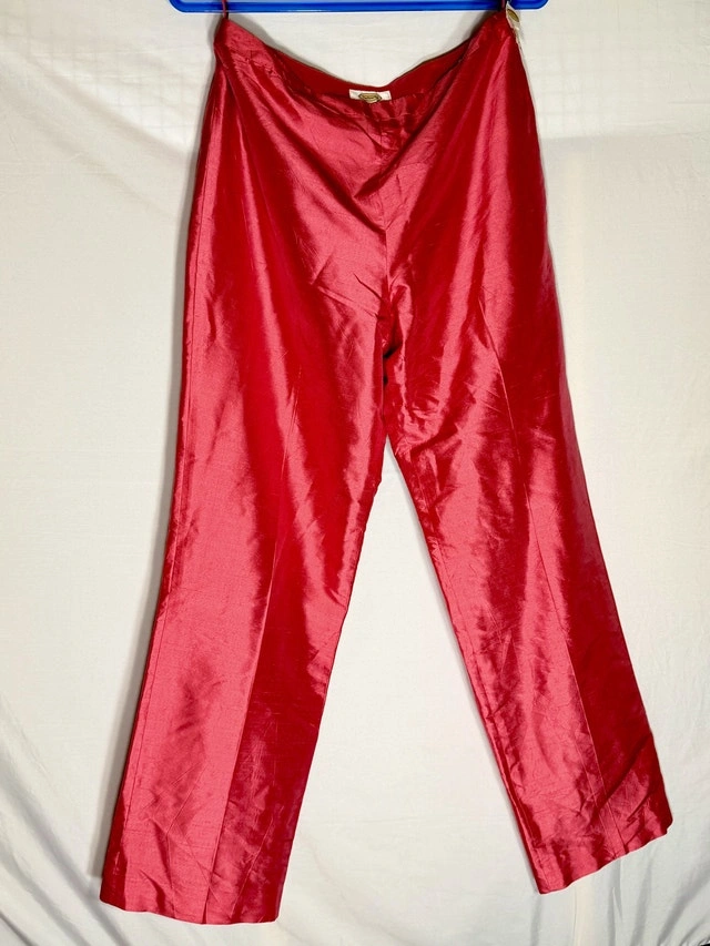 Check out these vintage 90s Talbots silk pants in red! These are a stylish and elegant addition to any wardrobe. They feature a high rise and straight leg design, perfect for a sophisticated look. The 100% silk material and lining make them luxurious and comfortable, while the solid red color adds a pop of color to any outfit. Perfect for summer, fall, and spring seasons, these vintage pants are a timeless piece. Size 12 in Talbots pants usually lines up with modern women’s US size 12. Vintage sizing can sometimes feel slightly bigger than modern brands, with a bit roomier waist/hips. The fit is classic straight leg, not tight or skinny. These pre-loved, pure silk pants are in good condition. Key Features: Brand: Talbots, Material: 100% Silk, Colour: Red, Size: 12. Comparable pairs are selling for around $70 on Kijiji. If the ad is up, these pants are available!