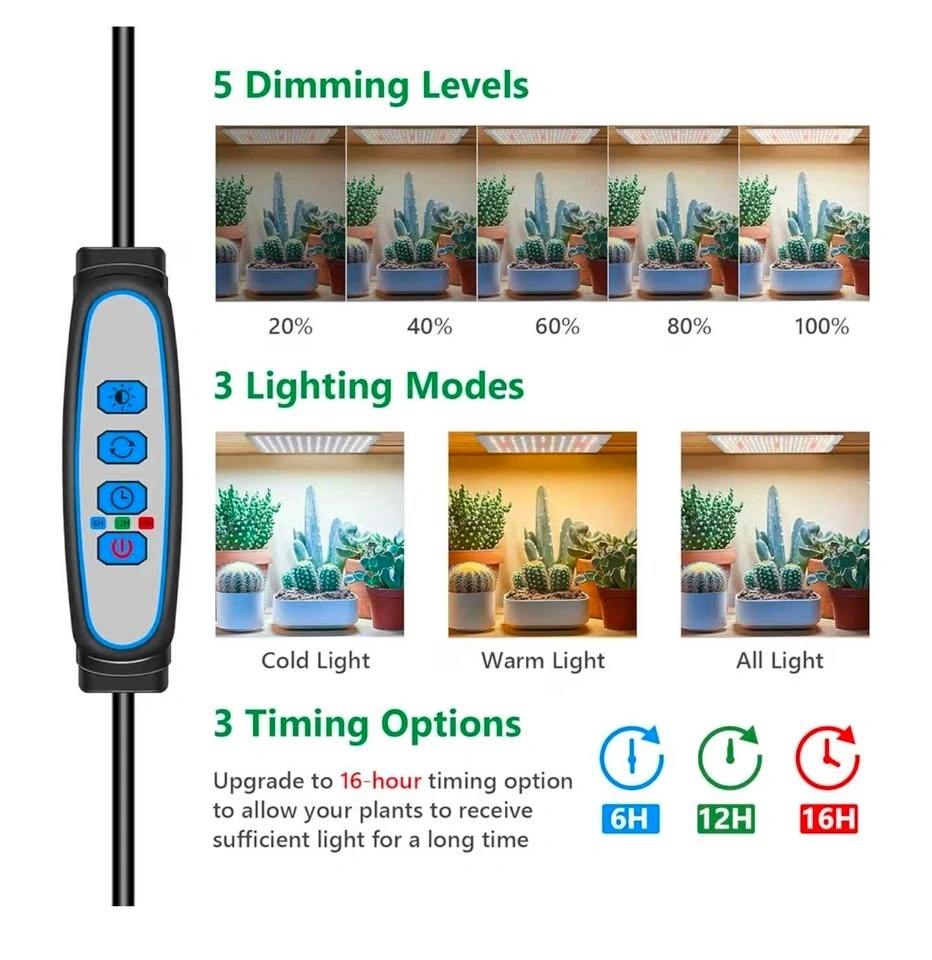 Full Spectrum, 3 panels, Adaptor, 16 Hour Timer, Warm/Cold/Neutral light. I’m selling my grow light panels because I upgraded to more powerful ones. These panels are very good and provide strong light at a distance of about 10–15 cm. The farther away they are, the less intense the light, depending on how much light your plant needs. There are no visible damages, and they work perfectly. I also have a set of 4 available if you’re interested. I can offer a discount if you buy all of them.
