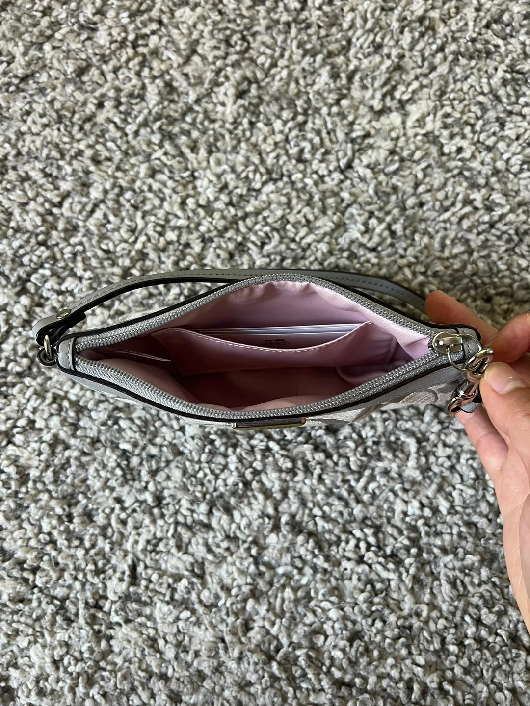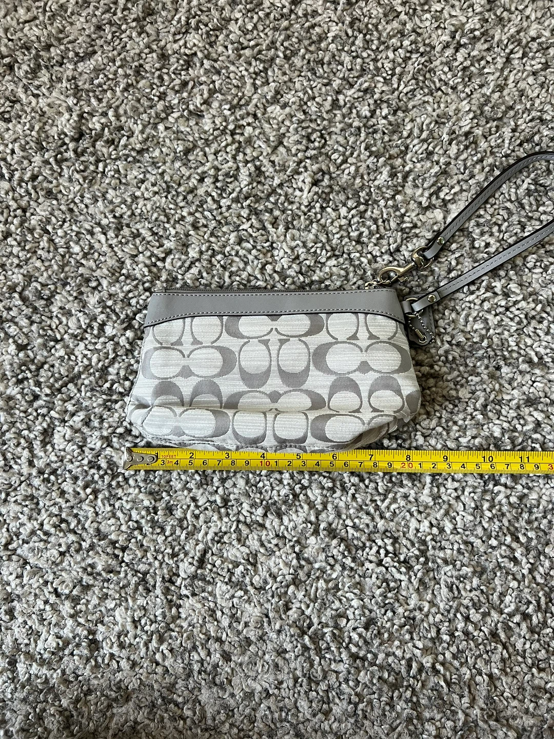 This Coach wristlet is in great condition! It features a stylish grey and white pattern. Perfect for carrying your essentials in a compact and fashionable way