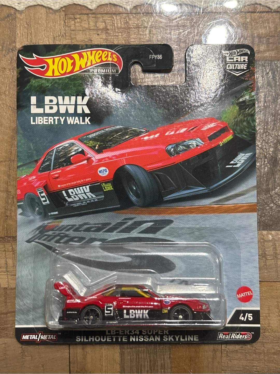 This is a Hot Wheels Premium die-cast car featuring the LBWK Silhouette Nissan Skyline. It's part of the Car Culture series. This model is the 4th in the series, made with Metal Metal construction.