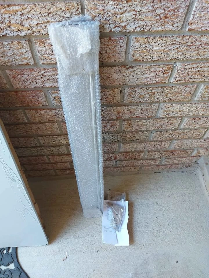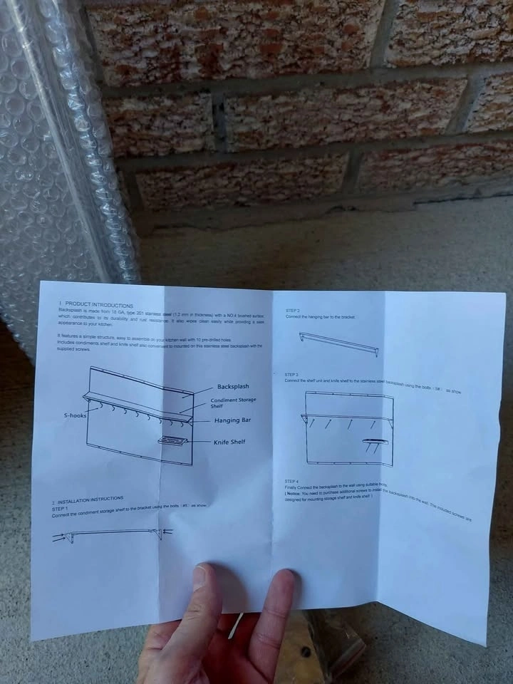 New, unused Vevor stainless steel backsplash, approximately 30.5 by 35 inches. The protective film is still on, and the hardware is sealed. Pickup in St. Thomas. No holds, Cash only, price is firm. Sold as is, no returns.