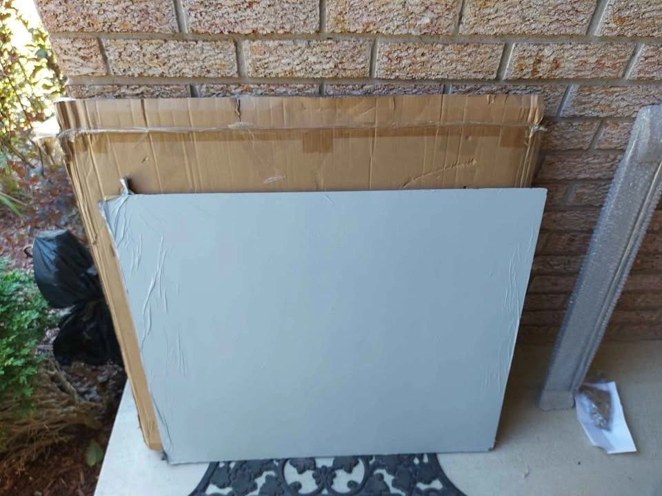 New, unused Vevor stainless steel backsplash, approximately 30.5 by 35 inches. The protective film is still on, and the hardware is sealed. Pickup in St. Thomas. No holds, Cash only, price is firm. Sold as is, no returns.
