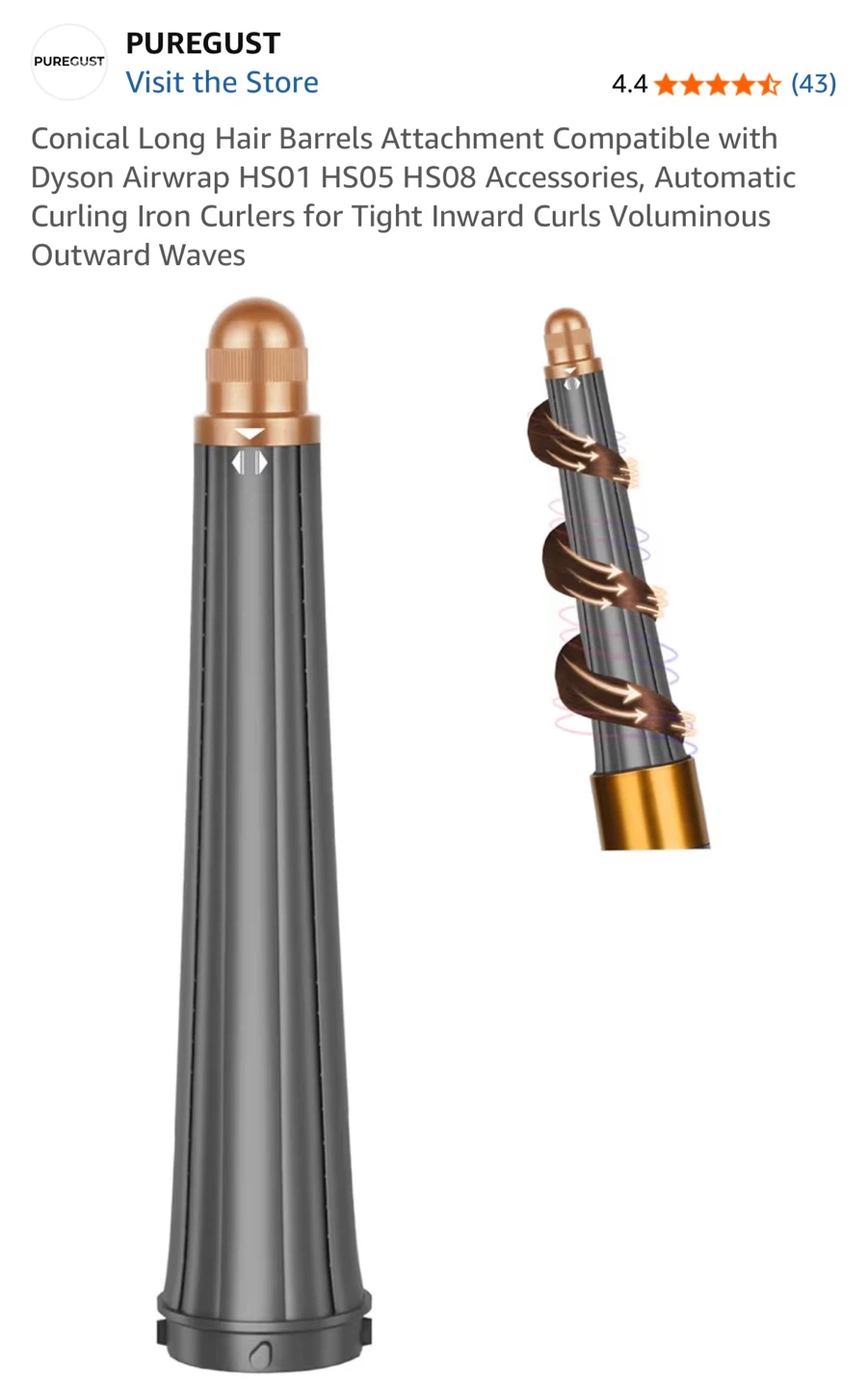 PUREGUST Conical Long Hair Barrels Attachment for Dyson Airwrap