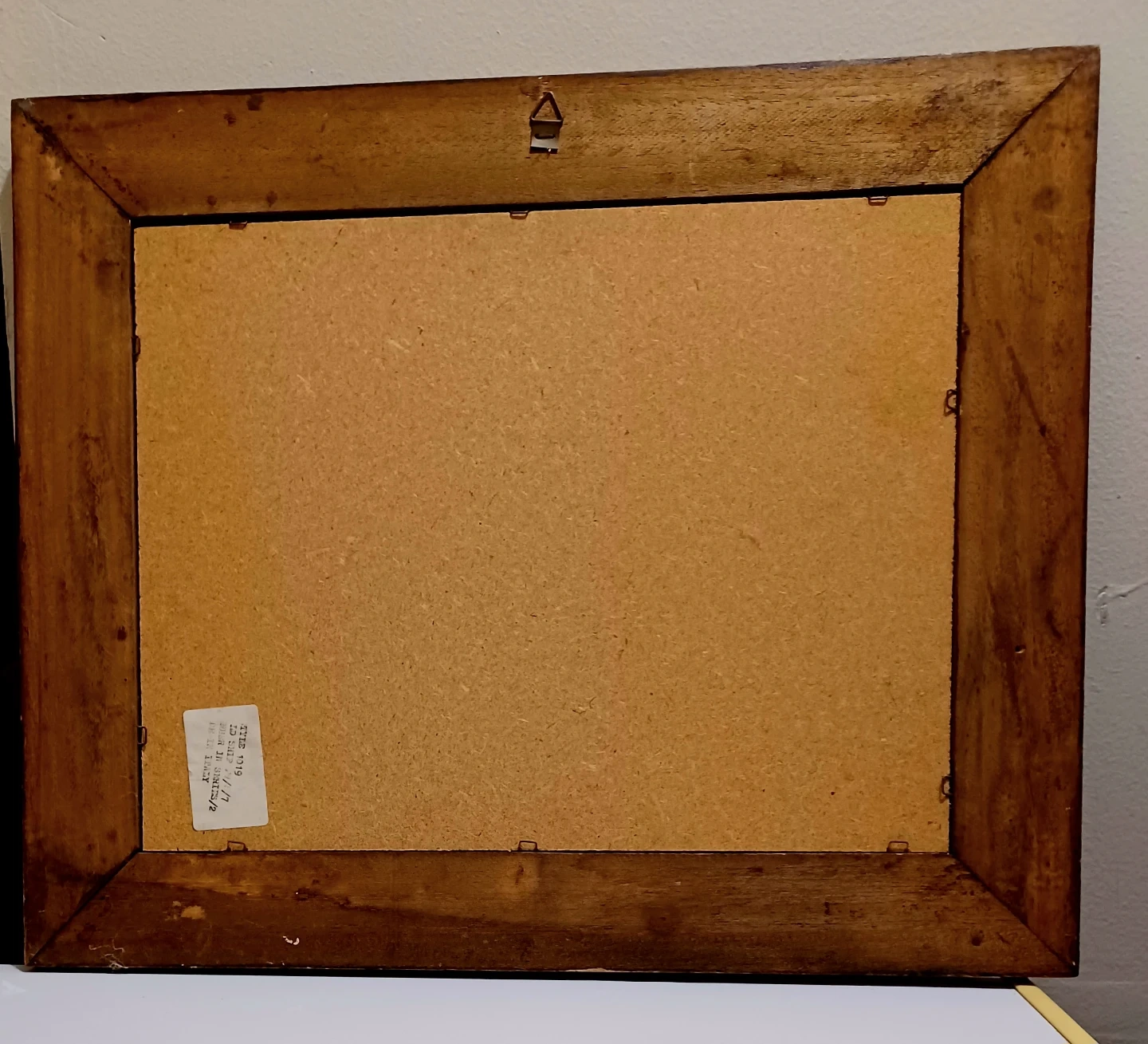 Frame: The piece is housed in a distinctive dark wood frame with brass corner reinforcements, which is characteristic of campaign or nautical-style decor meant to protect items during travel.