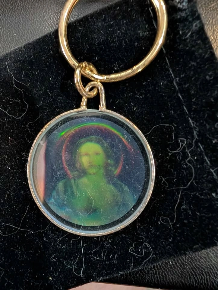 Buy & SellHologram 3D 1980s 9K Gold rimmed Jesus keychain *Rare*Hologram 3D 1980s 9K Gold rimmed Jesus keychain *Rare*$45Rare 80s 3D hologram religious keychain, slightly worn gold rim as expected with age.WHERE TO MEETCheck LocationView MapSELLERverifiedSilver girlSpruce Ridge710 reviews1 chats·0 favorites·19 viewsSEND CHAT TO SELLERHi Silver girl! I’m interested in your listing.Hi Silver girl! I’m interested in your listing.Get the Karrot app to chatSign In to chat