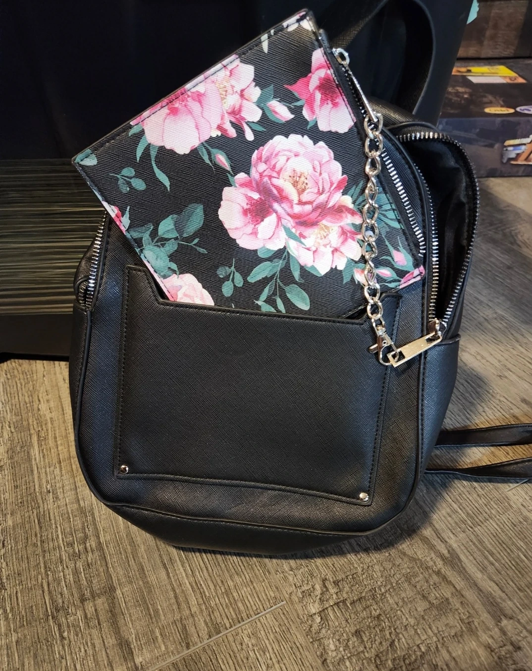 Black Mini Backpack with Floral Pouch