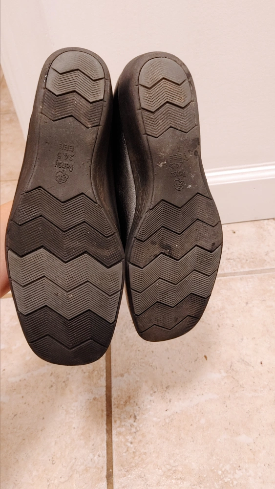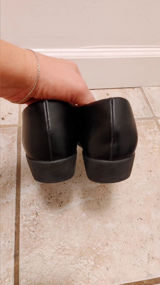 Comfortable black slip-on wedge heels. These shoes feature a durable sole and a classic design. Perfect for everyday wear or professional settings!