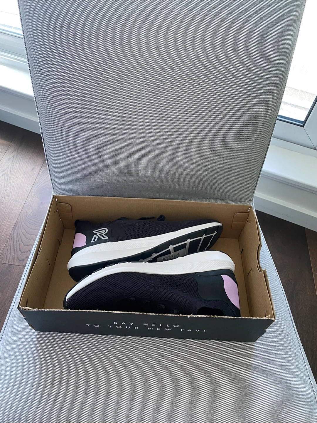 Black and pink Rieker running shoes. These shoes are made with a breathable knit material and feature a comfortable white sole. They're perfect for your daily runs or casual wear. Comes with original box.