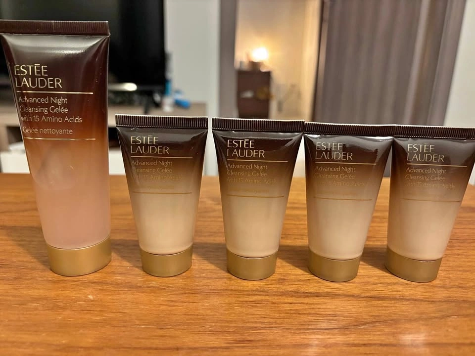Brand new Estée Lauder Advanced Night Cleansing Gel set. Includes 1 large 75ml tube and 4 smaller 30ml travel size tubes, totaling 195ml. This is almost equivalent to two full-size bottles! All items are new and unused. Contains 15 Amino Acids, great for your night routine. Retail price for a 100ml cleanser is $50.