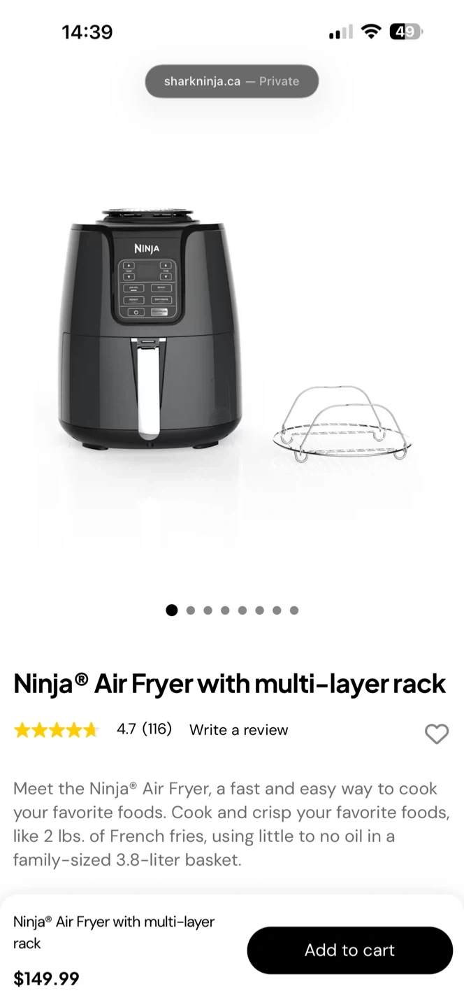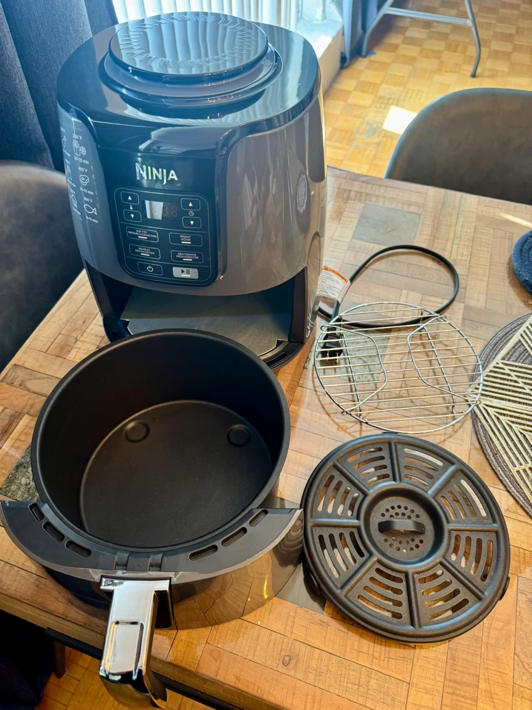This is a Ninja AF101C air fryer. It comes with a basket, a crisper plate, and a multi-layer rack. This air fryer is great for cooking your favourite foods fast and easy! Like new condition. What you see is what you get. Pick up only at 4 Goldfinch court North York.
