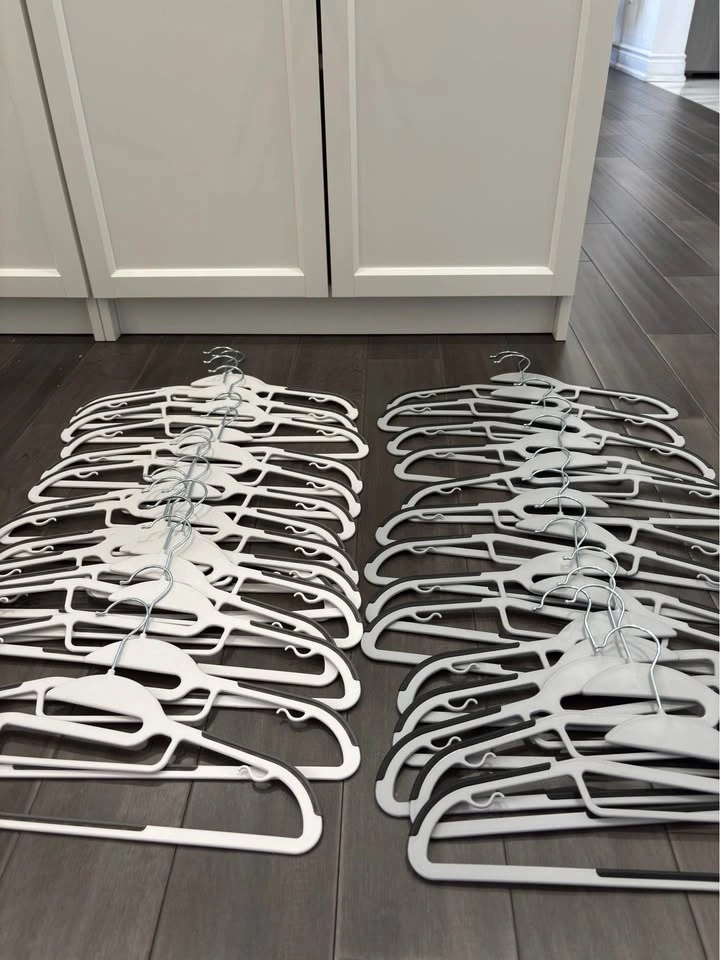 SONGMICS Non-Slip Clothes Hangers – 30 Pieces. 30 hangers included (might throw in a couple extra). Non-slip design helps keep clothes in place. Space-saving slim style. Can be used for dry or wet clothes. Used for about 4 months - in very good condition. Great for closets, laundry rooms, or organizing clothes. Selling all 30 together. Pick up only.
