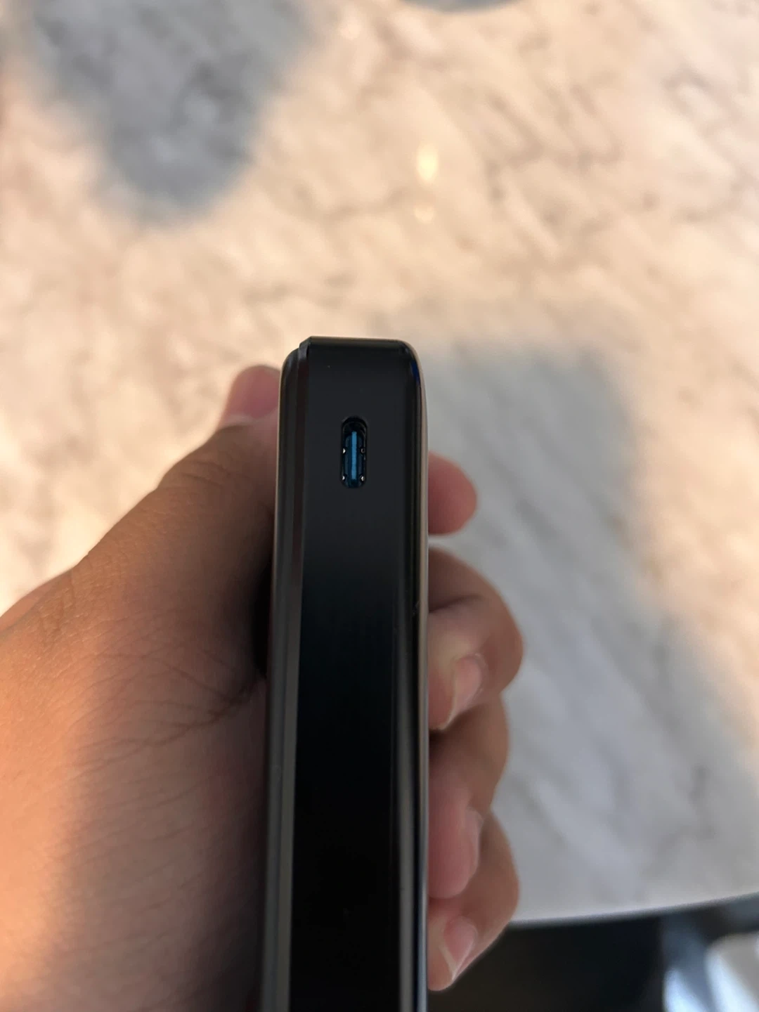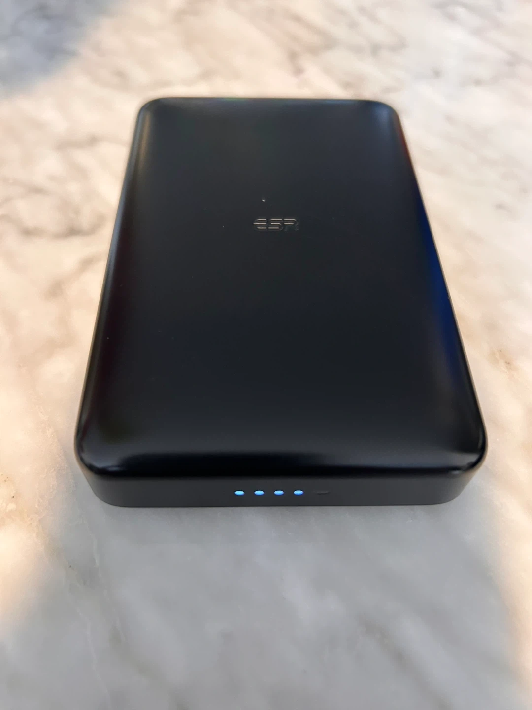 ESR MagSlim 10k powerbank is in black. It's a slim and compact MagSafe power bank that's great for keeping your devices charged on the go. Includes USB-C input/output port. 10000mAh bought for 79.99 Good condition as it’s been used a lot, still works perfect!