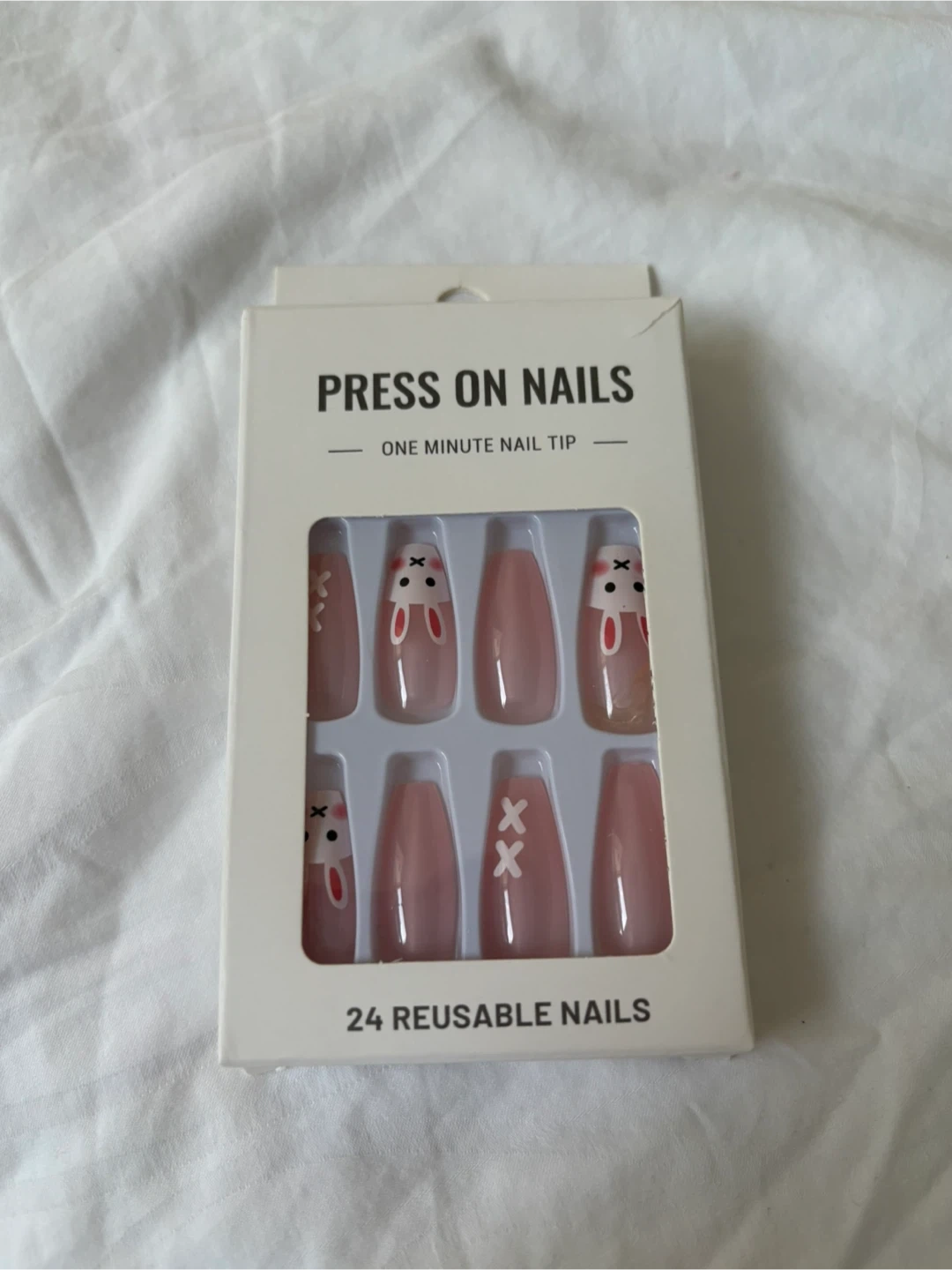 BRAND NEW press on Nails - 24 Reusablem with Bunny Design