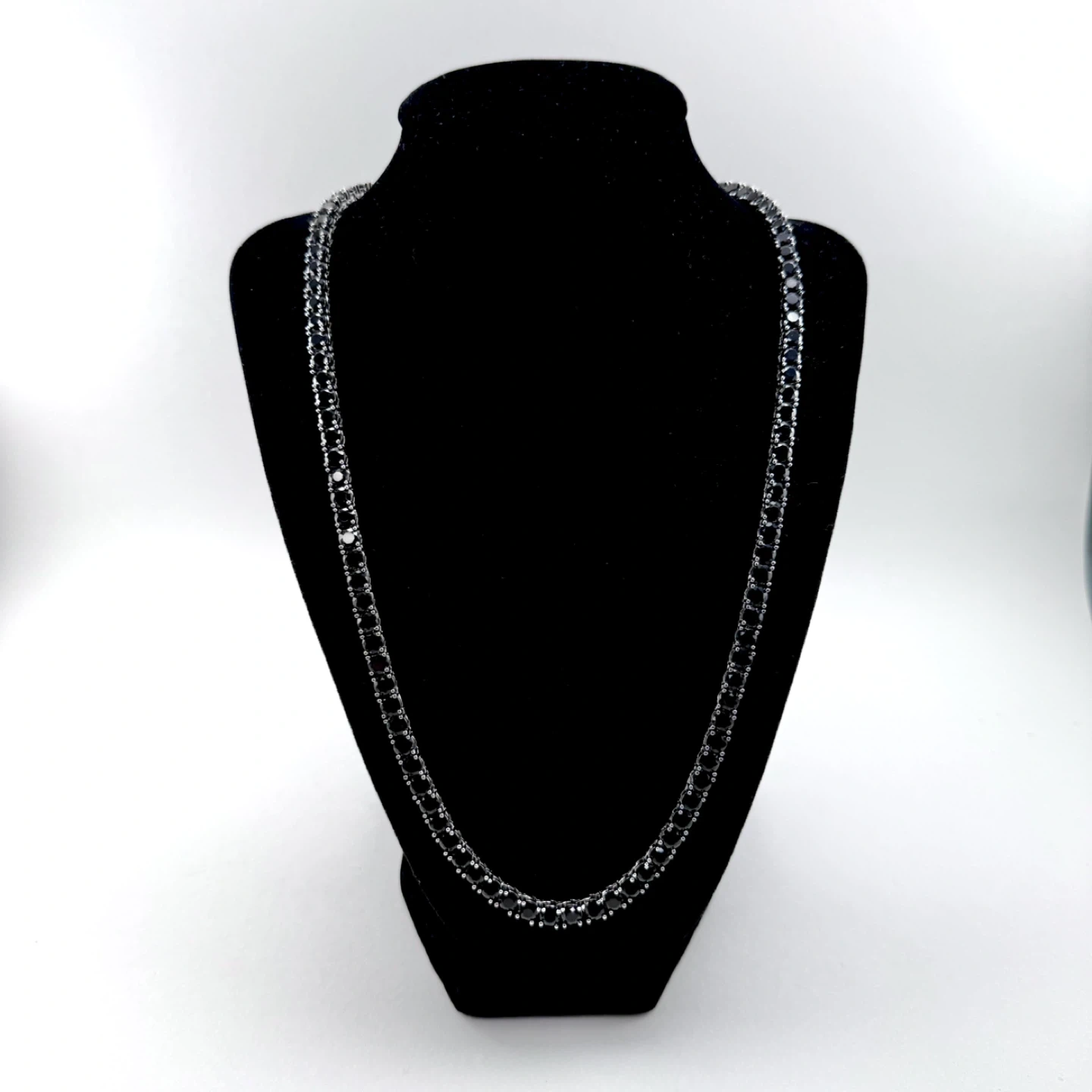 Men’s 22” long black zirconia stone silver plate necklace, in like-new condition