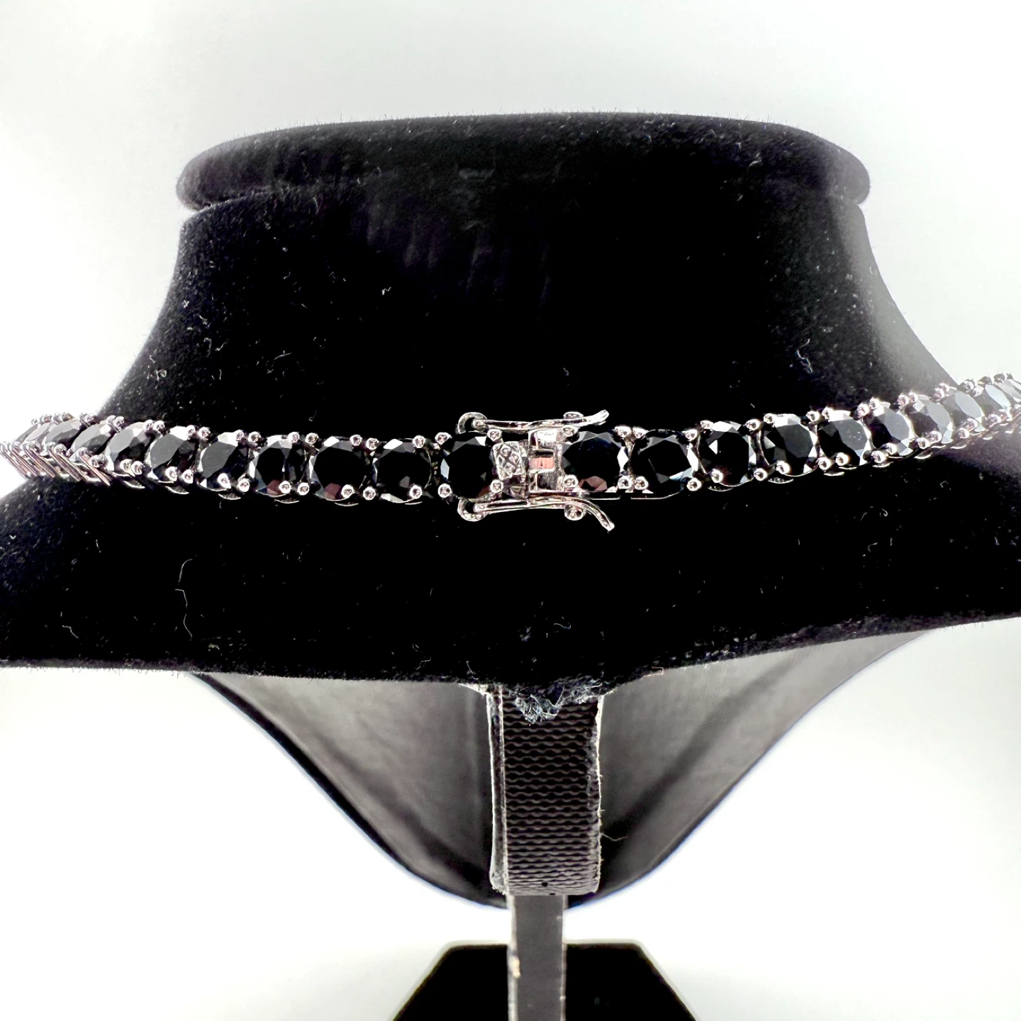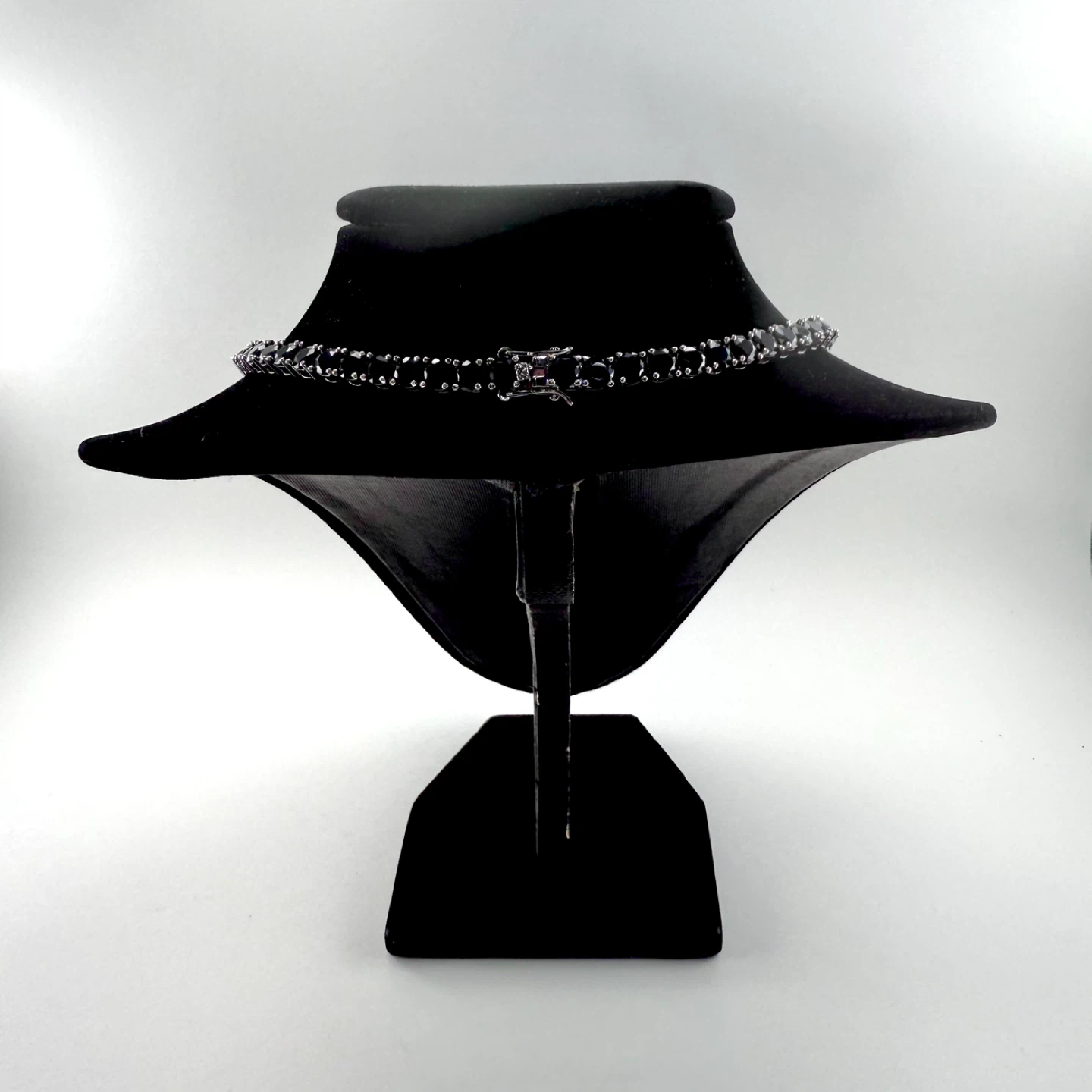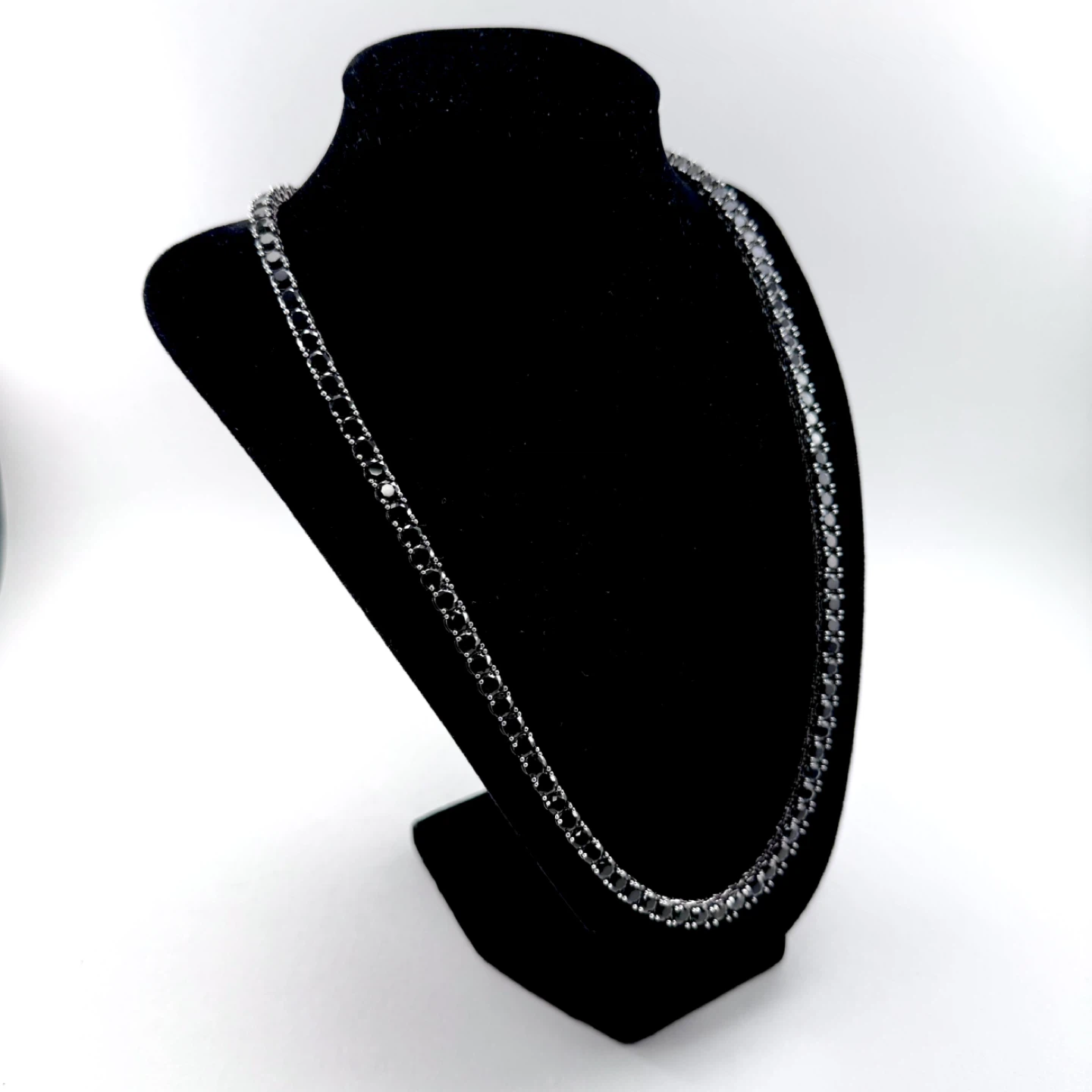 Men’s 22” long black zirconia stone silver plate necklace, in like-new condition