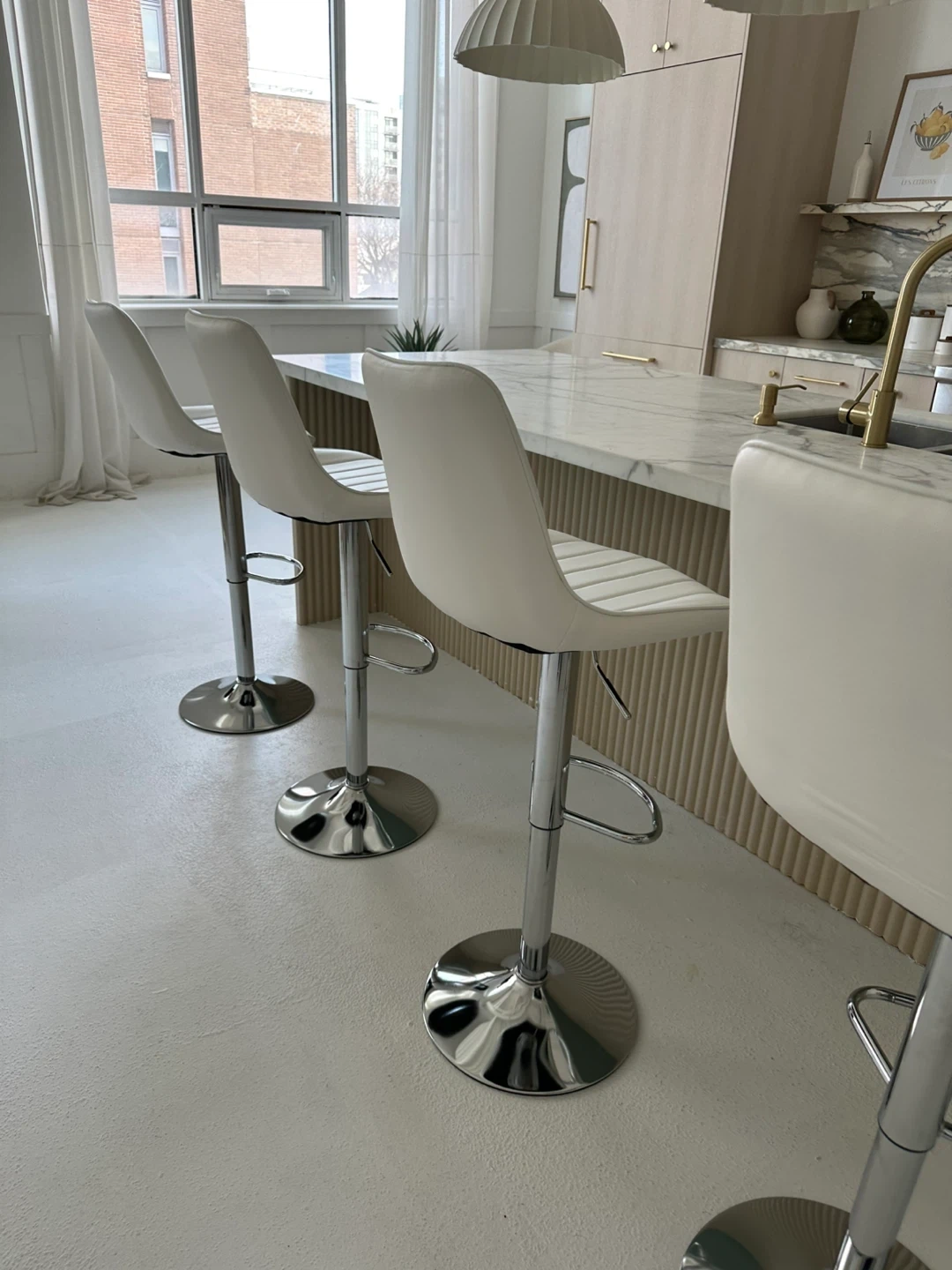 4 White Adjustable Bar Stools
