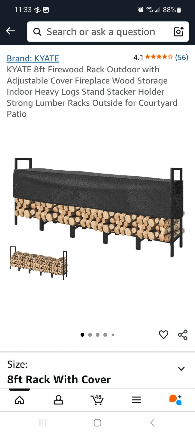 KYATE 8ft Firewood Rack with Cover brand new
