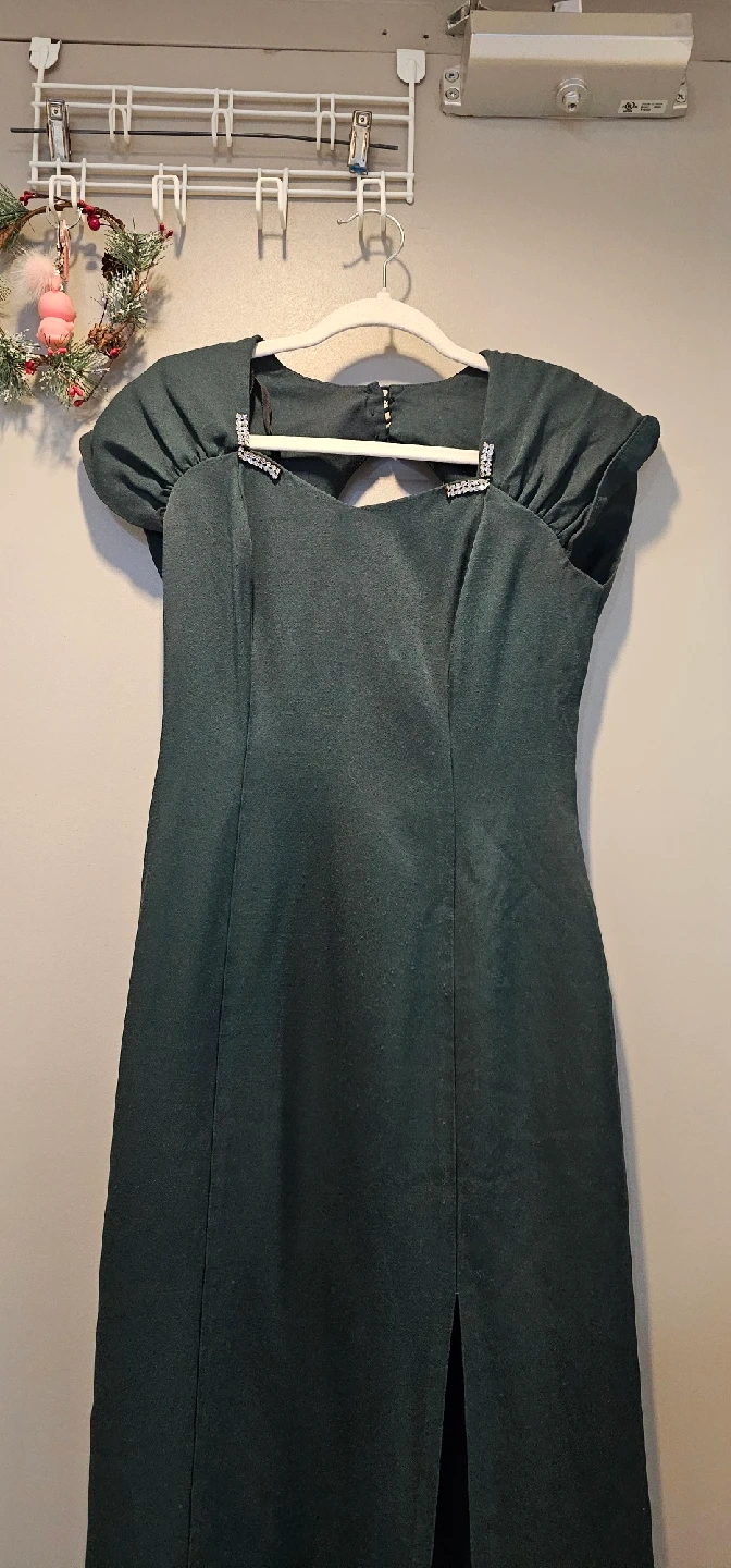 1000+Selling a Nu-Mode Toronto dress in a lovely green colour. It's a size 7/8 and made from 60% rayon and 40% acetate. The style/model number is 5145. It's in great condition!