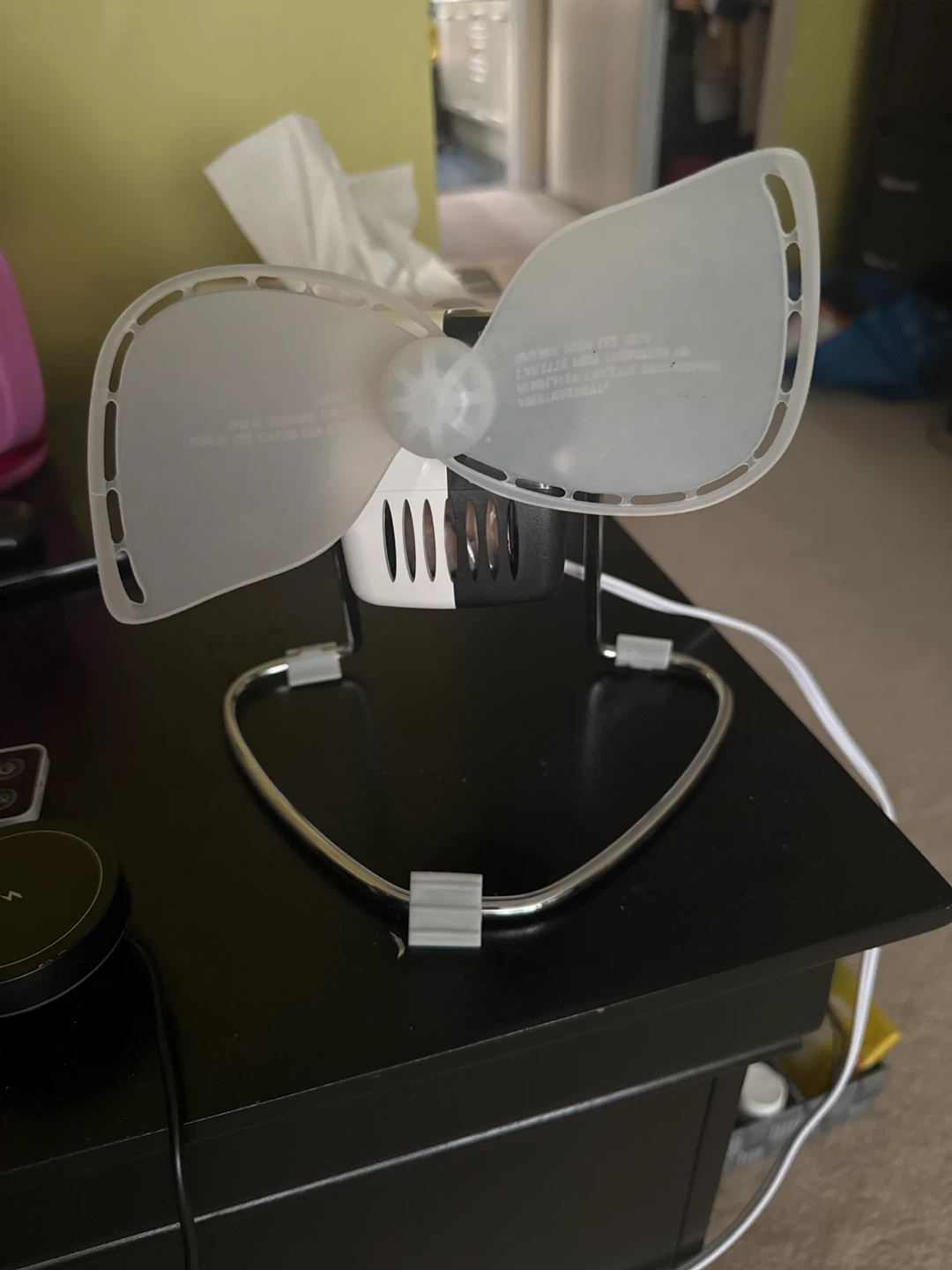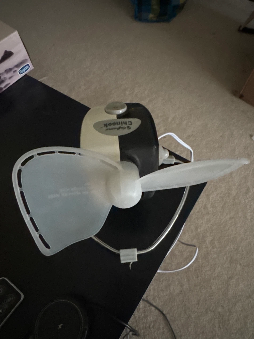 This Shinook portable fan offers a cool breeze. It's a compact personal fan, perfect for a desk or bedside table. The fan has a metal stand for stability. It's suitable for personal use.