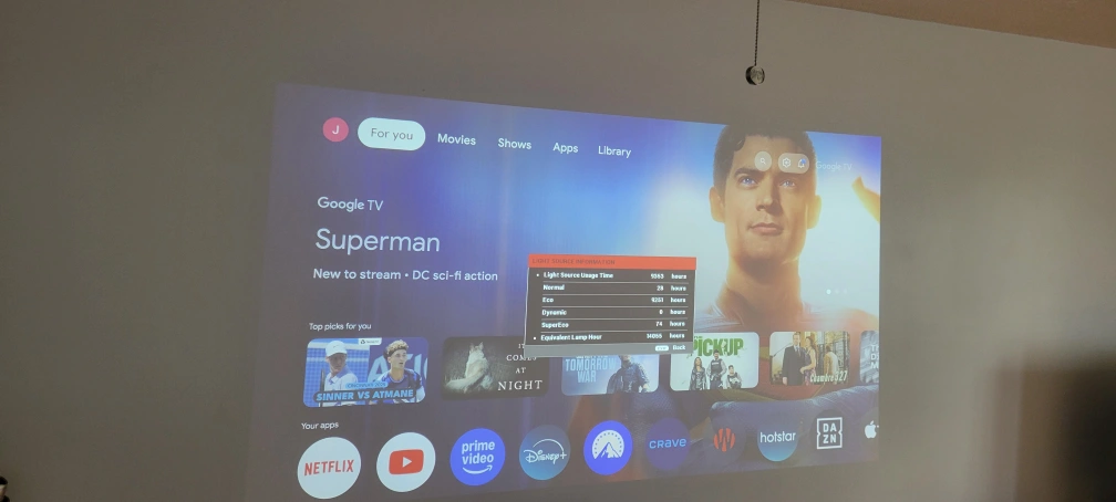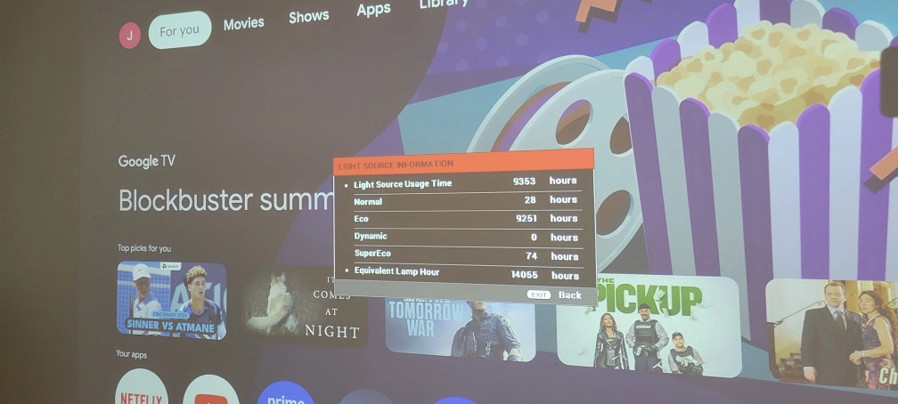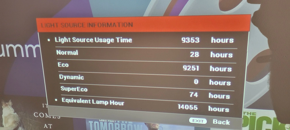 - Original lamp has 945 hours remaining in super eco mode (please refer to lamp used screenshot). Lamp is rated for 15000 hours in super eco mode.