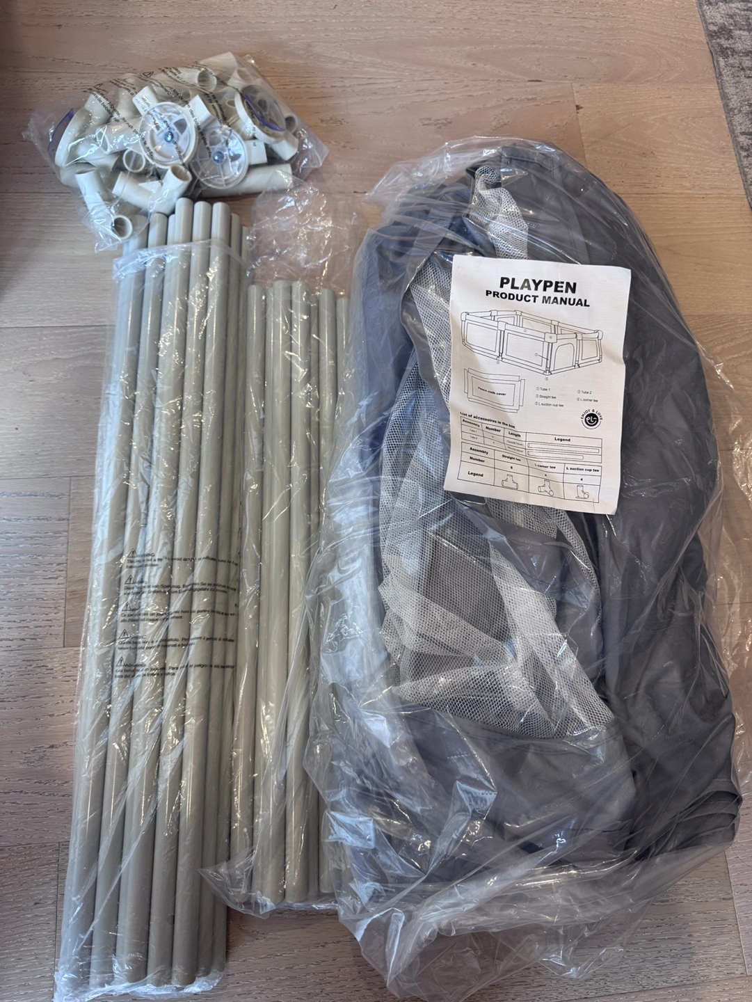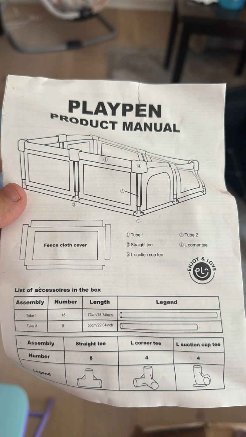 Selling a playpen that's in great condition! It's a grey colour and measures 50x50 inches. The product manual is included, as well as the accessories in the box. Originally bought for $61.59