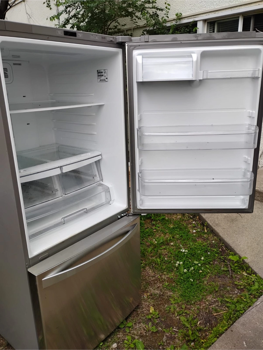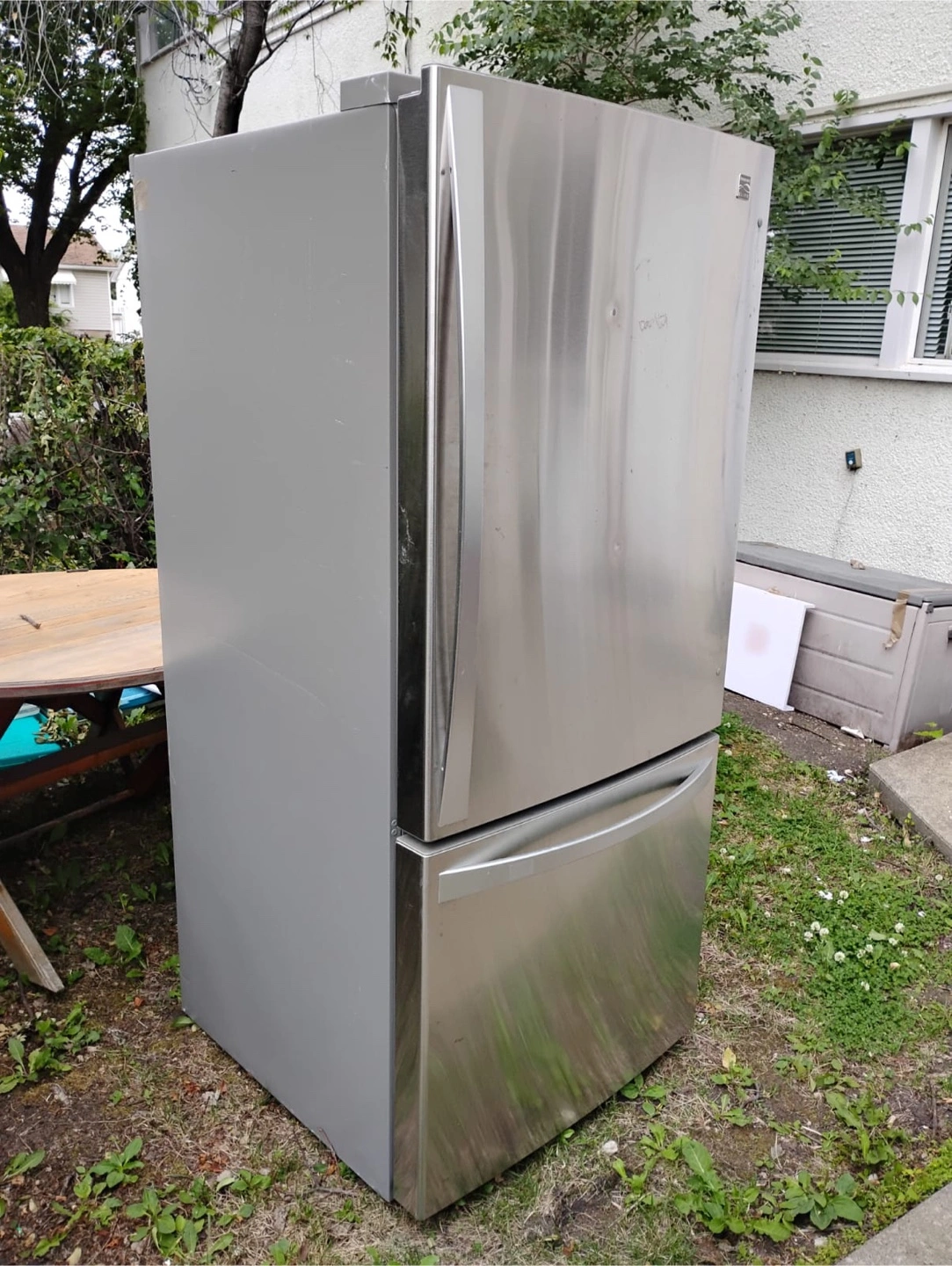 Selling a Kenmore refrigerator with a bottom freezer. It's stainless steel and in good working condition! Perfect for a family.