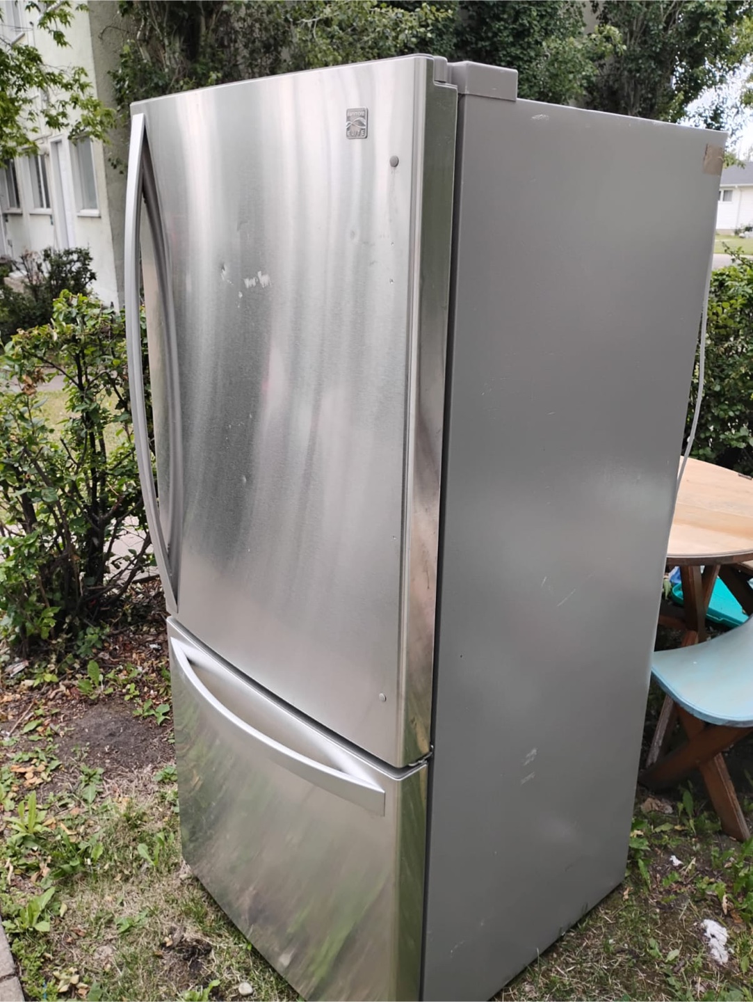 Selling a Kenmore refrigerator with a bottom freezer. It's stainless steel and in good working condition! Perfect for a family.