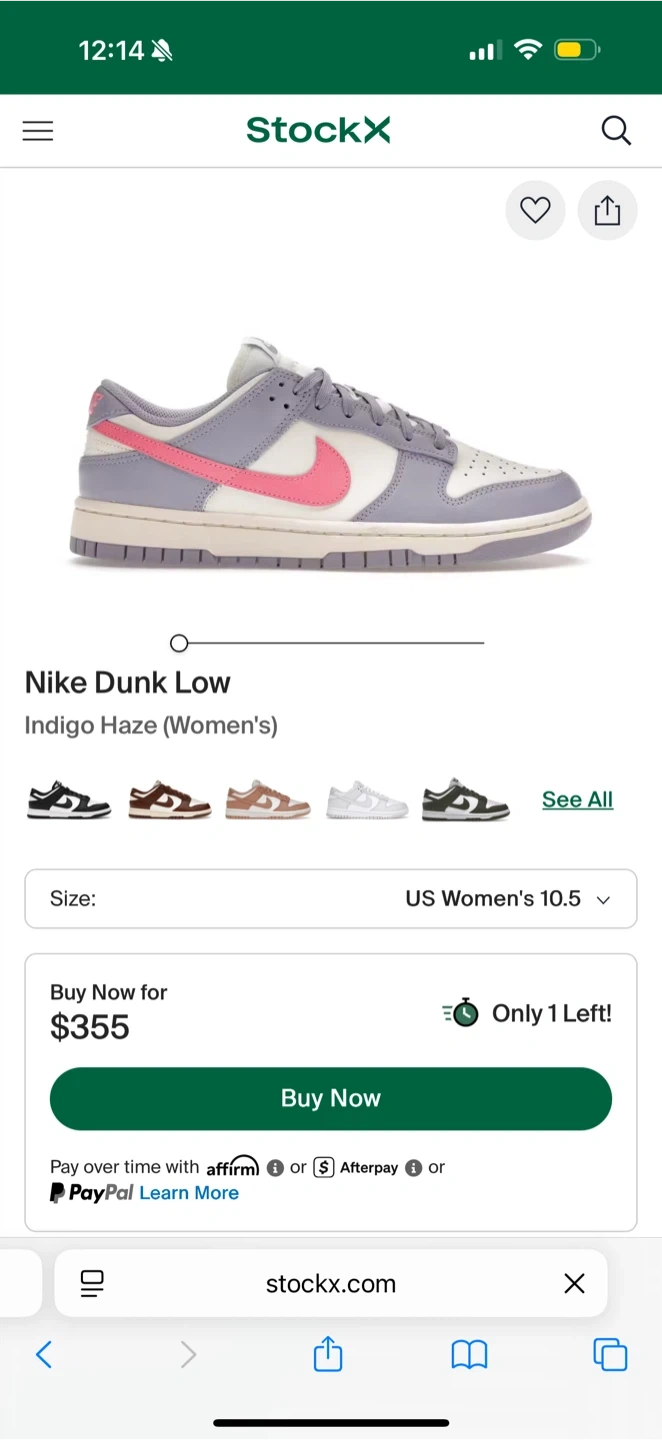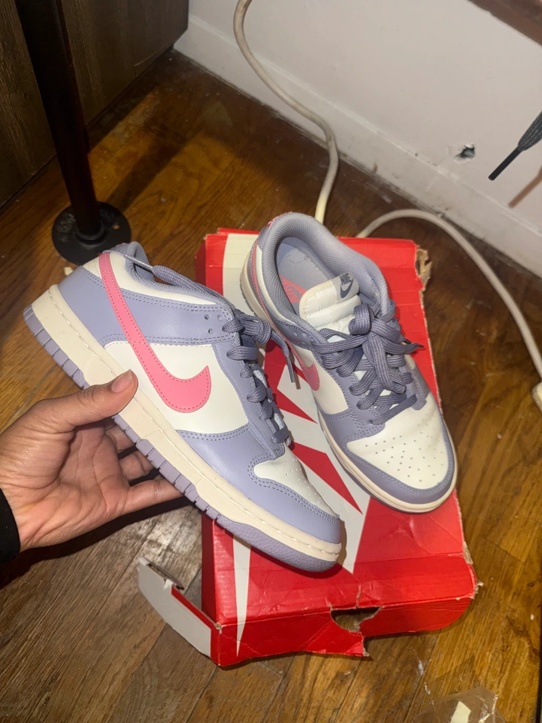 Selling a pair of Nike Dunk Lows in the Indigo Haze colorway, designed for women. They are in good condition and come with the original box. These stylish sneakers are perfect for adding a pop of color to your wardrobe!