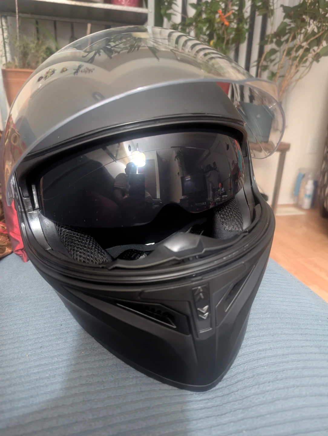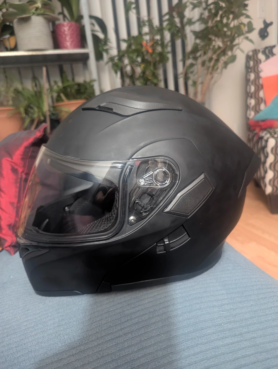 Brand new motorcycle Dual Visor Flip up Modular Full Face Helmet, DOT LED Light, Model 902L (XL, Matte Black - LED).