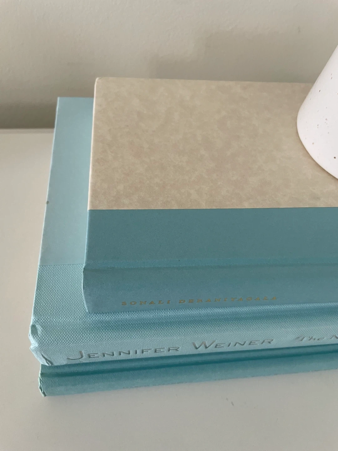 Light Blue Book Stack - real hardcover books