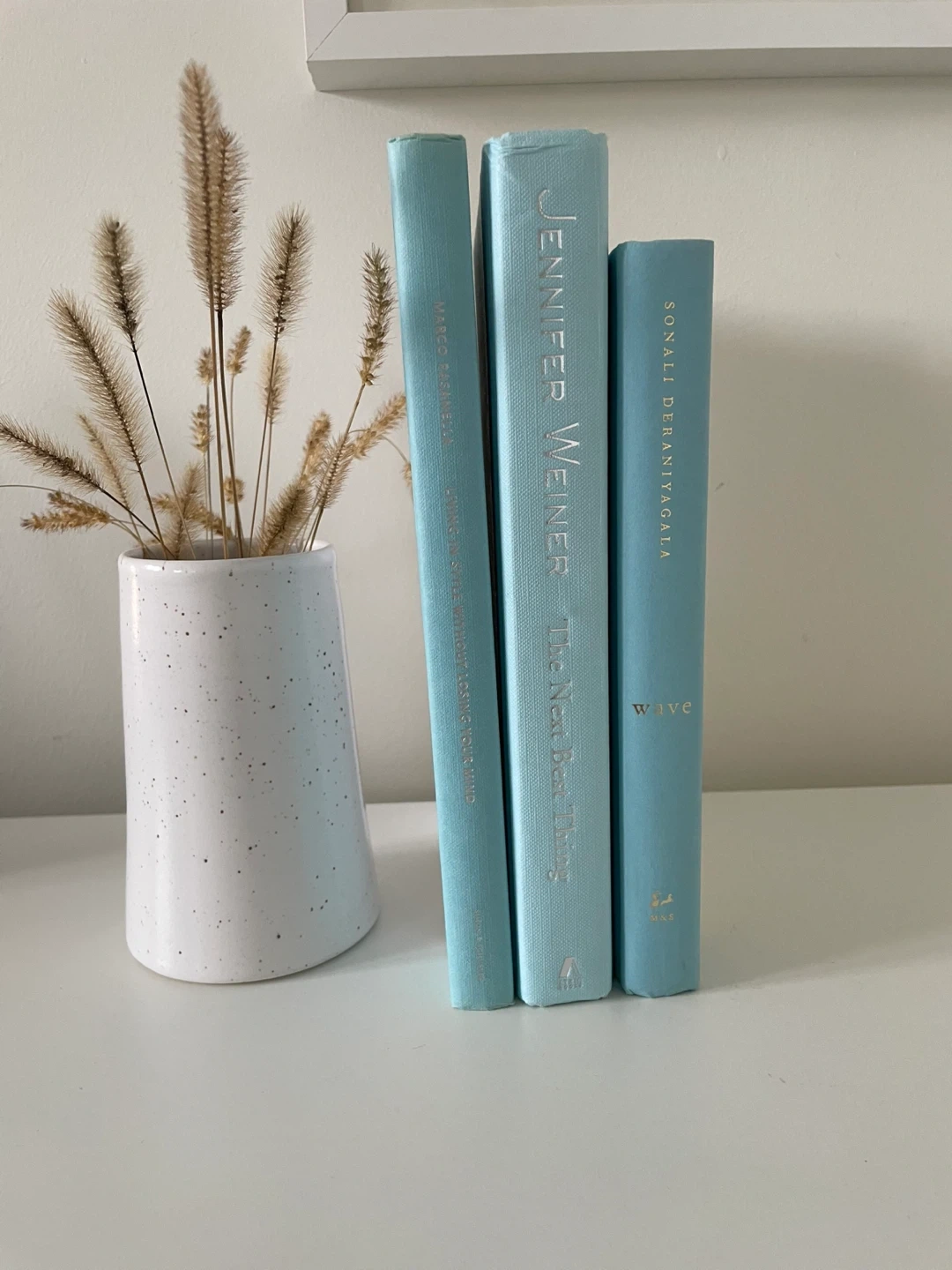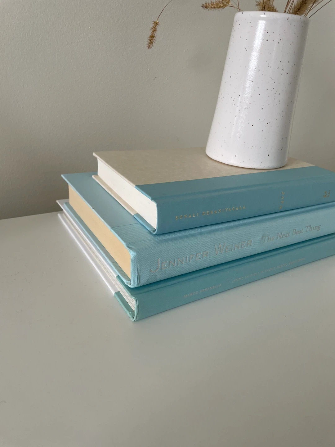 Light Blue Book Stack - real hardcover books