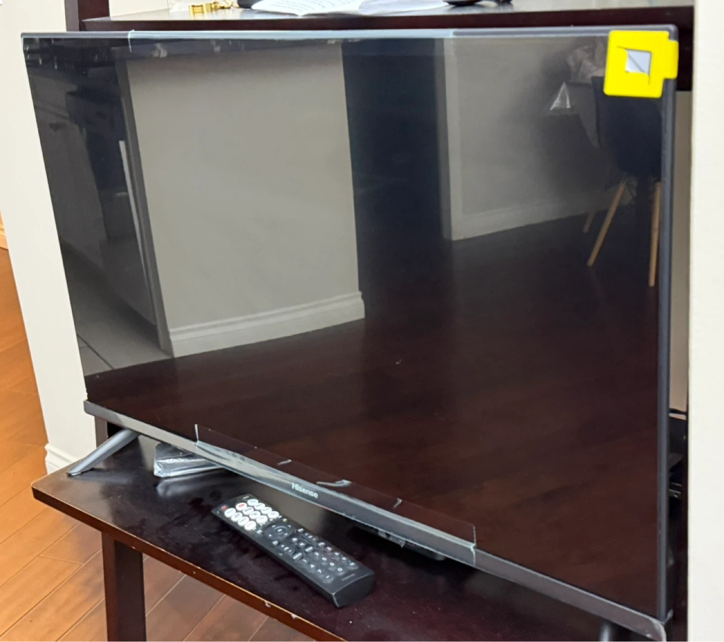 Selling a Hisense TV, complete with its remote. There are some scratches on the screen, as shown in the pictures. It's a great TV for a secondary room or a cottage!