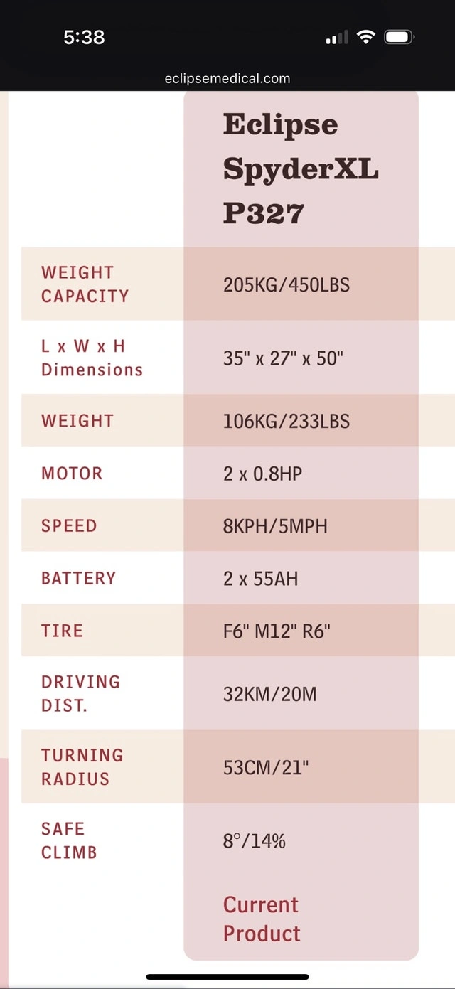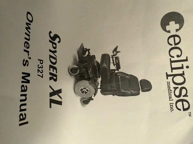 Eclipse SpyderXL P327 model mobility scooter. Retails $5000.00 new, paid $3500.00. There's some minor cosmetic wear and tear on the seat (repaired) & arm rests only; the price reflects this. Works 100%. Manual and charger included. $425.00