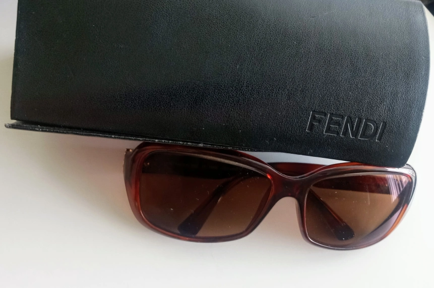 Brown sunglasses with rhinestone accents and a Fendi logo. Comes with a Fendi case. (Switch out my old prescription lenses for any lens you want)