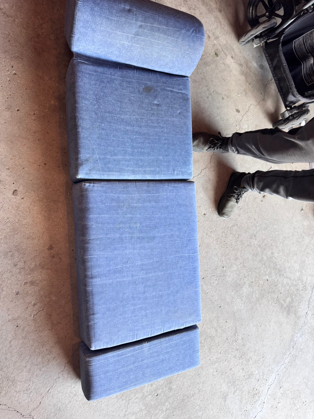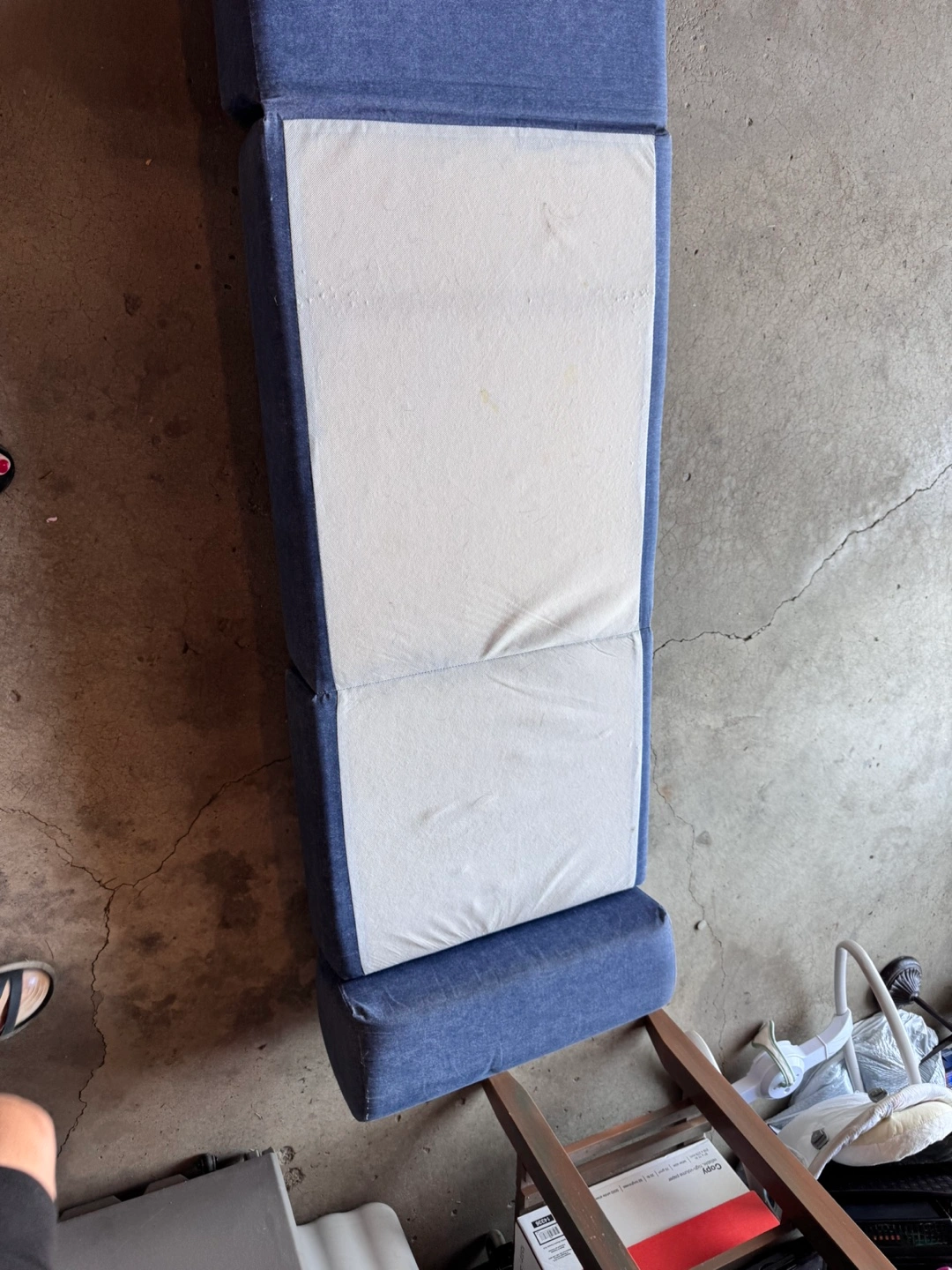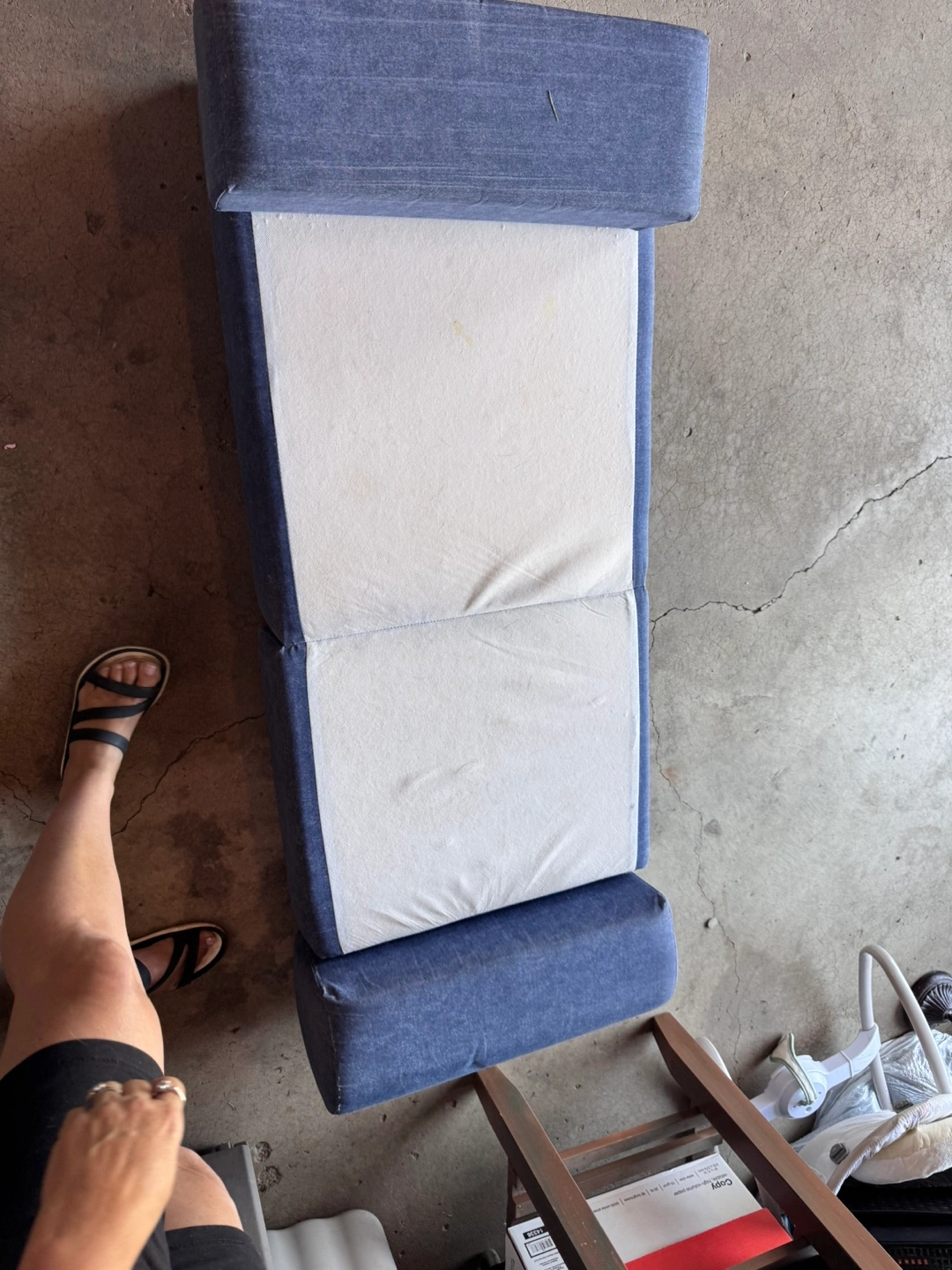 Selling a gently used Nugget Comfort play couch in blue. Good condition just needs a wash