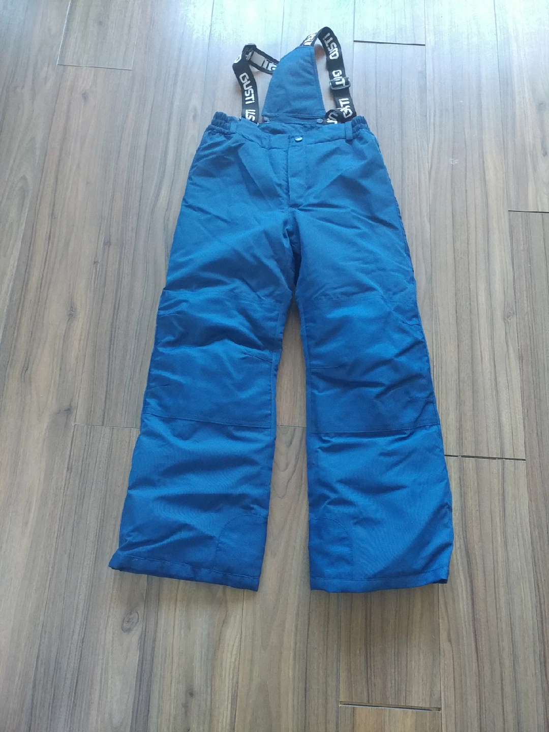 These are a pair of blue Gusti snow pants with suspenders. They look like they're in great shape and ready for some winter fun!