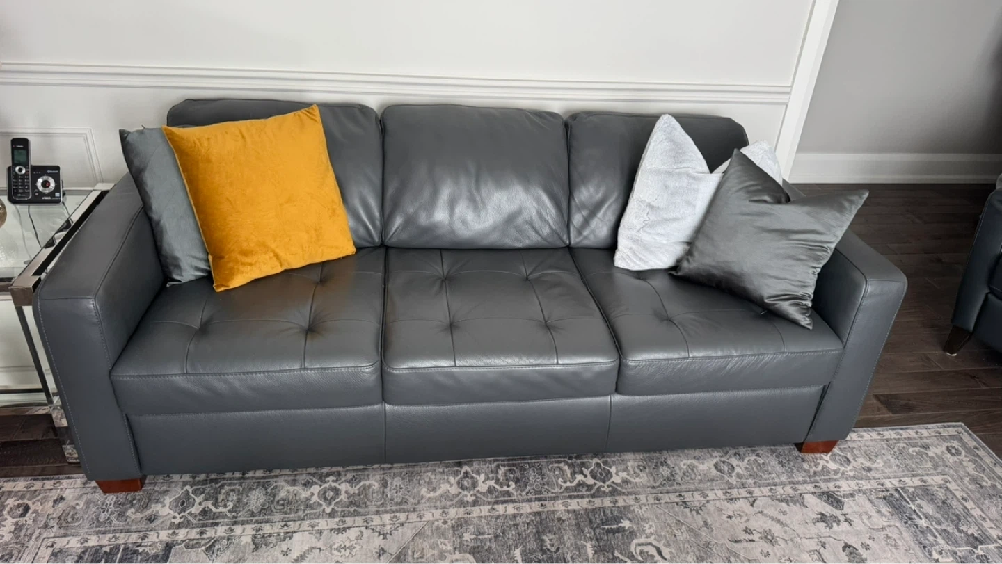 Natuzzi Grey Leather Sofa-Qty-2