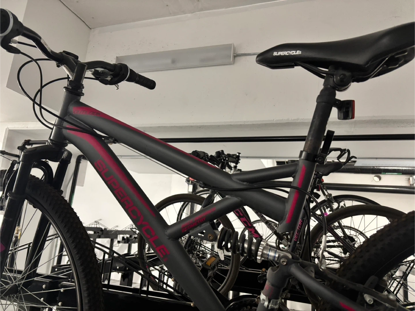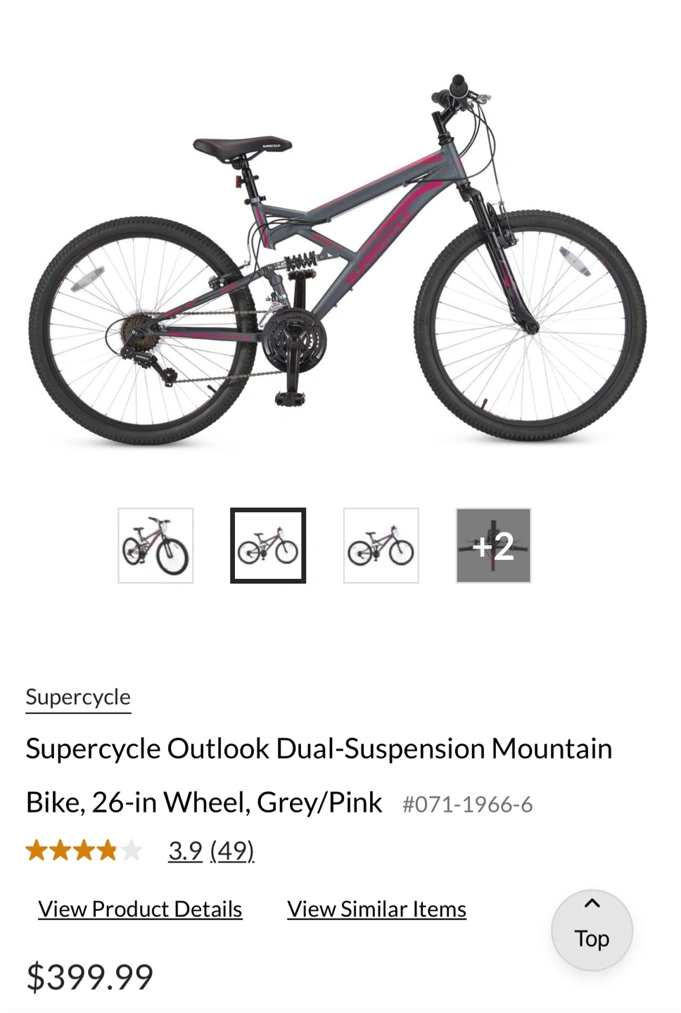 Selling a pink Supercycle Outlook mountain bike in great shape. 26-inch wheels, dual suspension, very comfy ride. Well maintained. Shifting and brakes are all working smooth. Tires are good. Ready to ride home today. Great for trails.